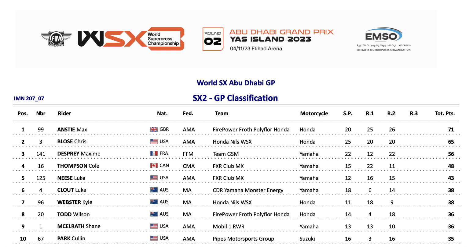 “Yeah, it's great to have the red plate and I don't know, coming into this, having the British national anthem playing and Jamie Dobb rubbed it in quite a few times that he was the last British World Champion,” said Anstie. “And I don't really care whether it's MXGP or this, I want one of those gold FIM medals. In MXGP and MX2, I got a third place one. And man, I never thought I'd be back on a 250, now I'm here with this opportunity.”