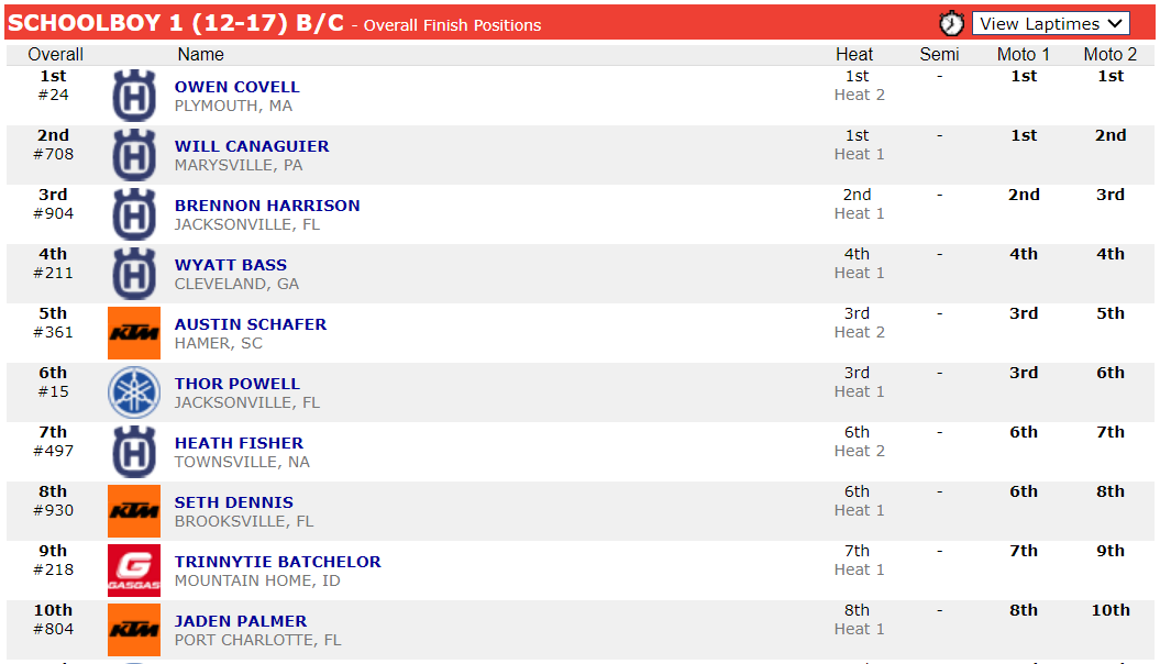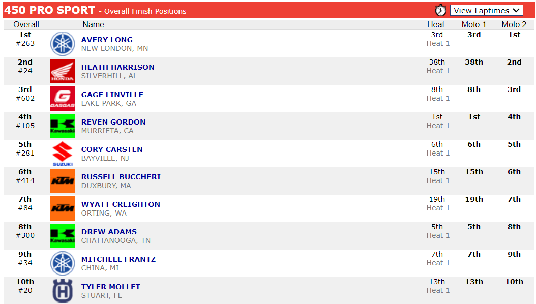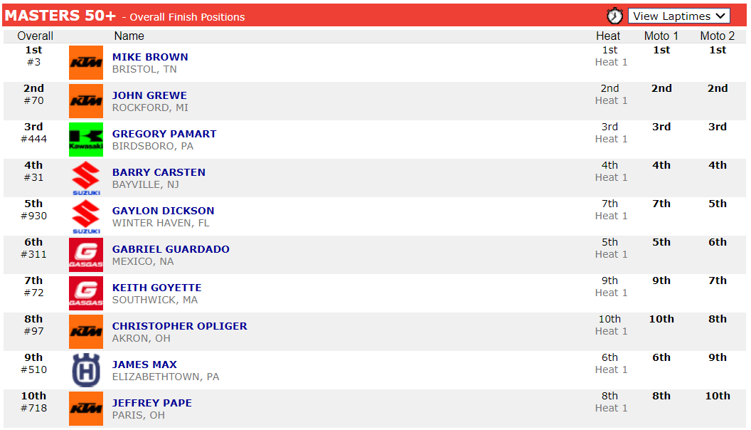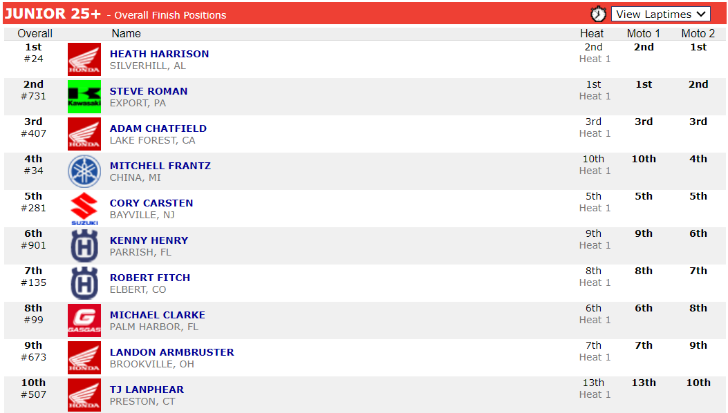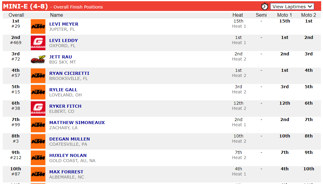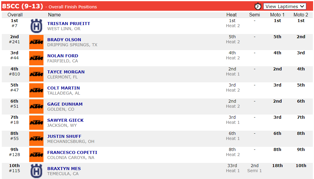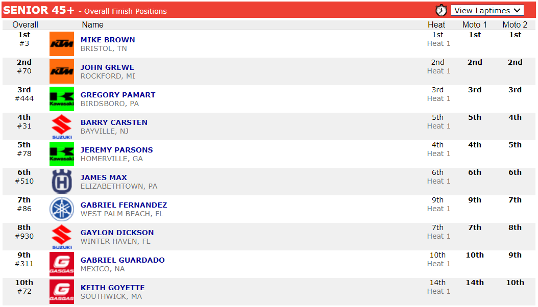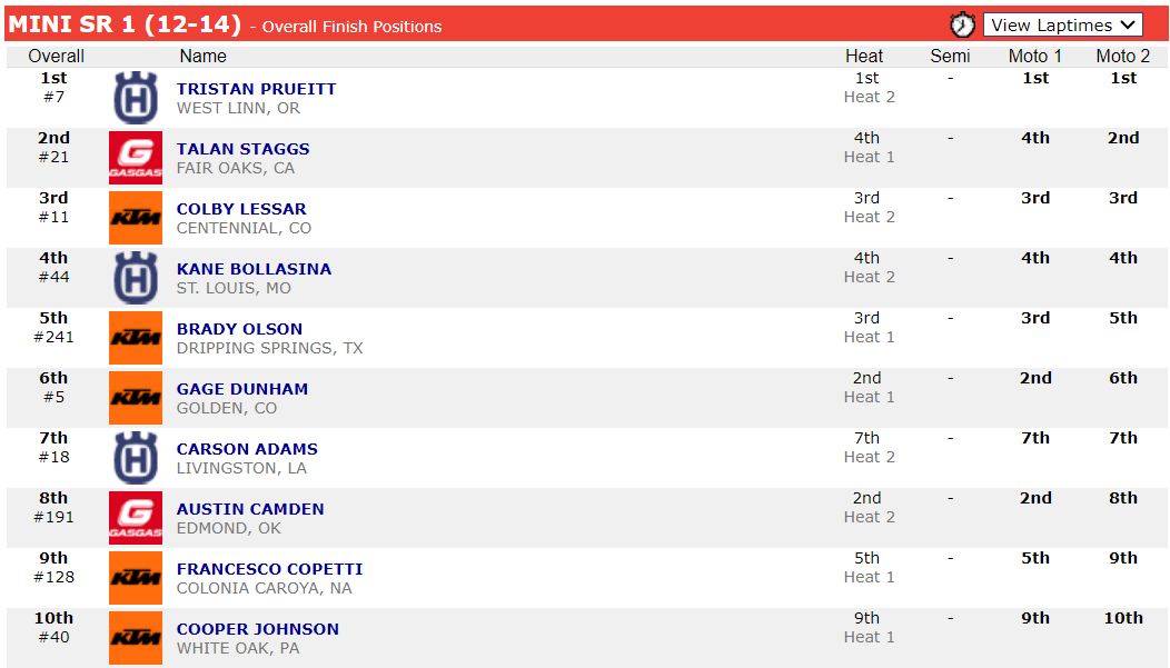 Here are the top ten overall finishes from each class. To view the full results, visit https://resultsmx.com/liveview/class.asp?c=&e=270&s=