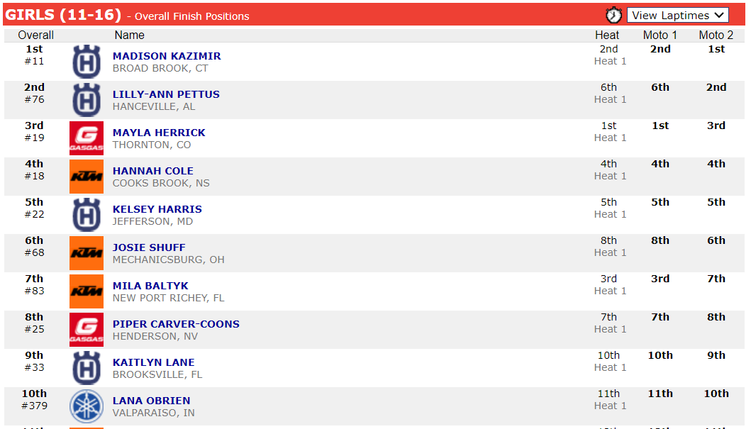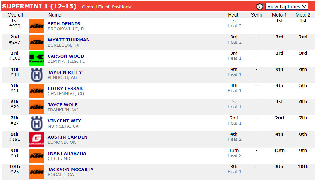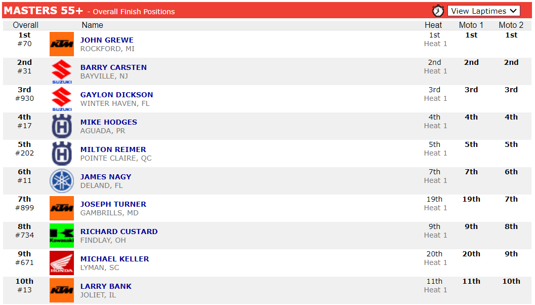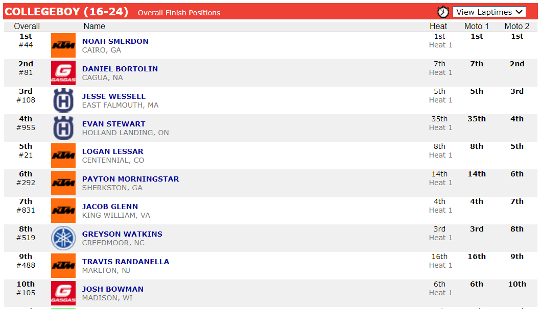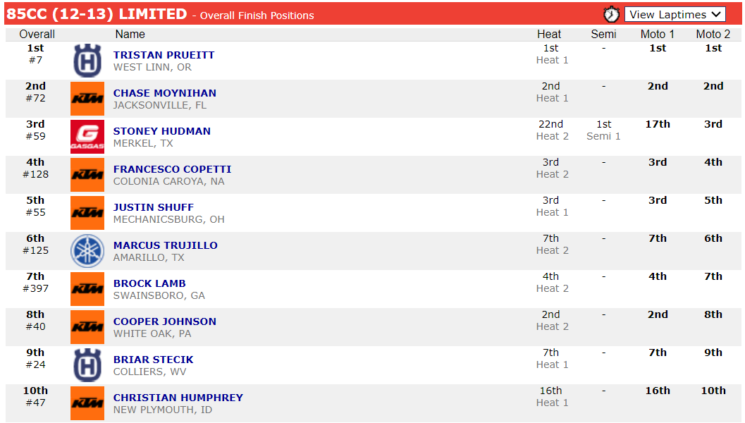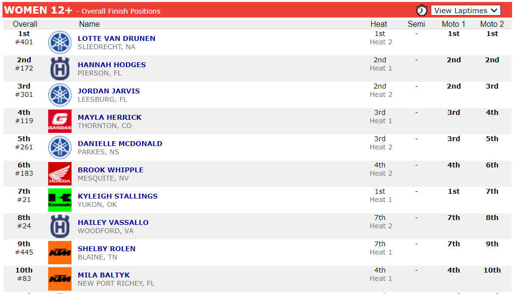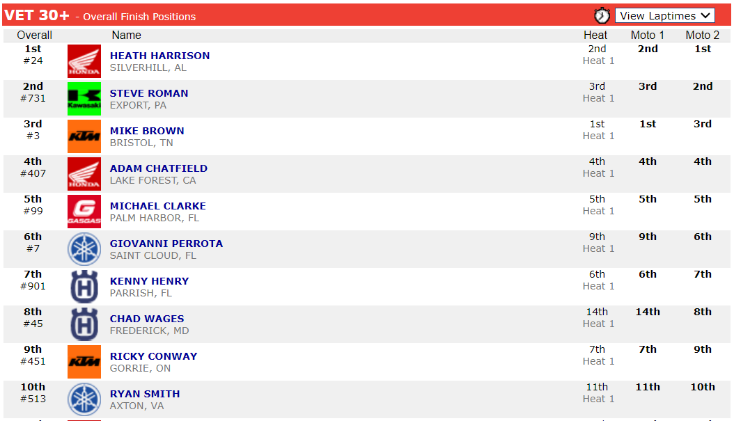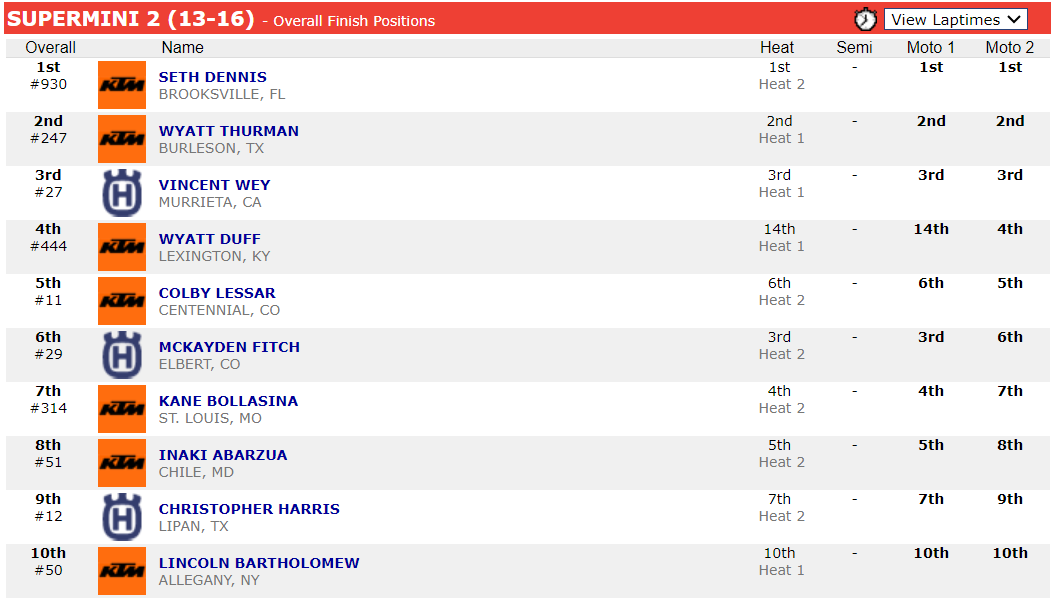 Here are the top ten overall finishes from each class. To view the full results, visit https://resultsmx.com/liveview/class.asp?c=&e=270&s=