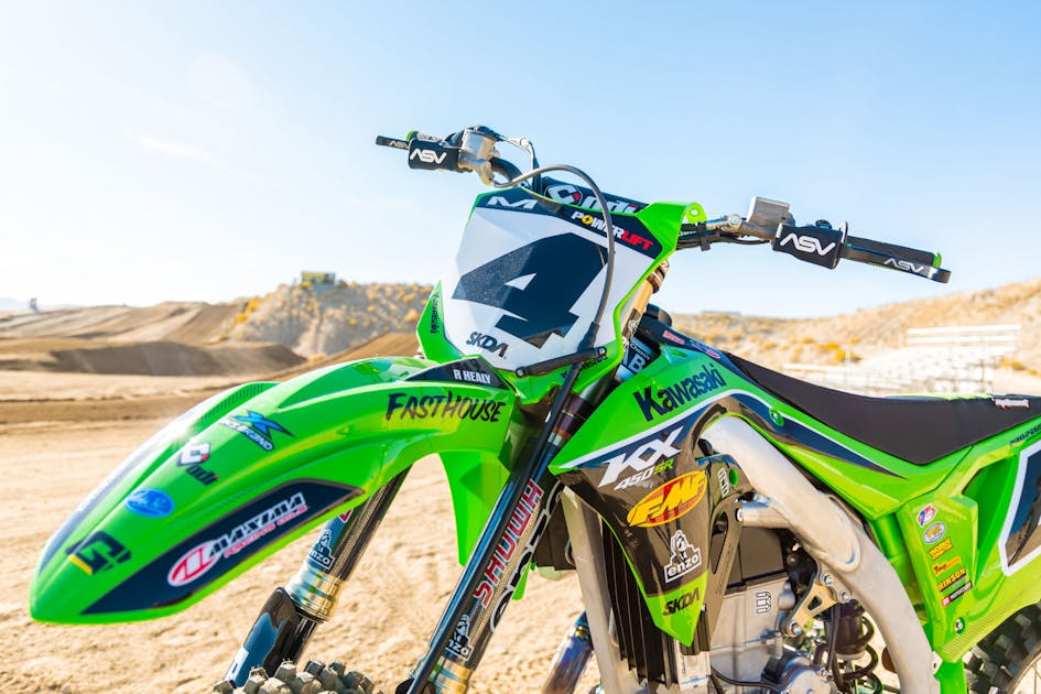The 2023 Kawasaki KX450SR is a great bike, no doubt about it, but what if you want to build your own SR? What if you want to use the parts that you like in order to build the KX450 of your dreams? This is what Rob Healy did to his 2023 KX450. Rob enlisted some of the help of his industry friends to build the ultimate vet machine for him! He was looking for more low-end power that is ridable and smooth as well as a suspension package that was plush. Oh, and don’t forget that as a vet rider, you are now required to dress up your machine accordingly.