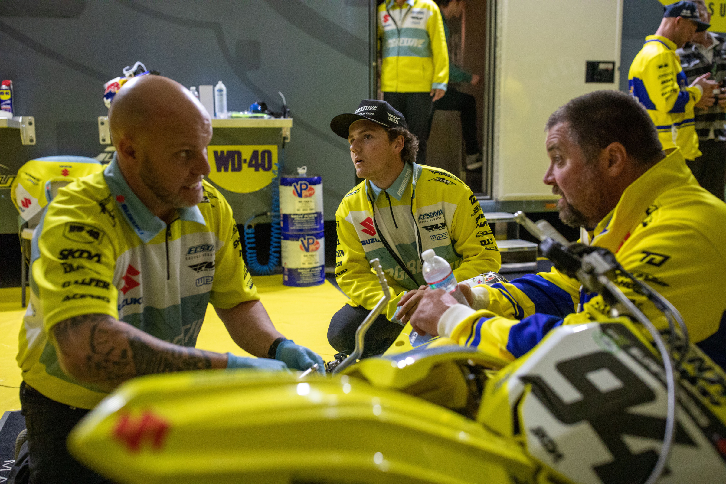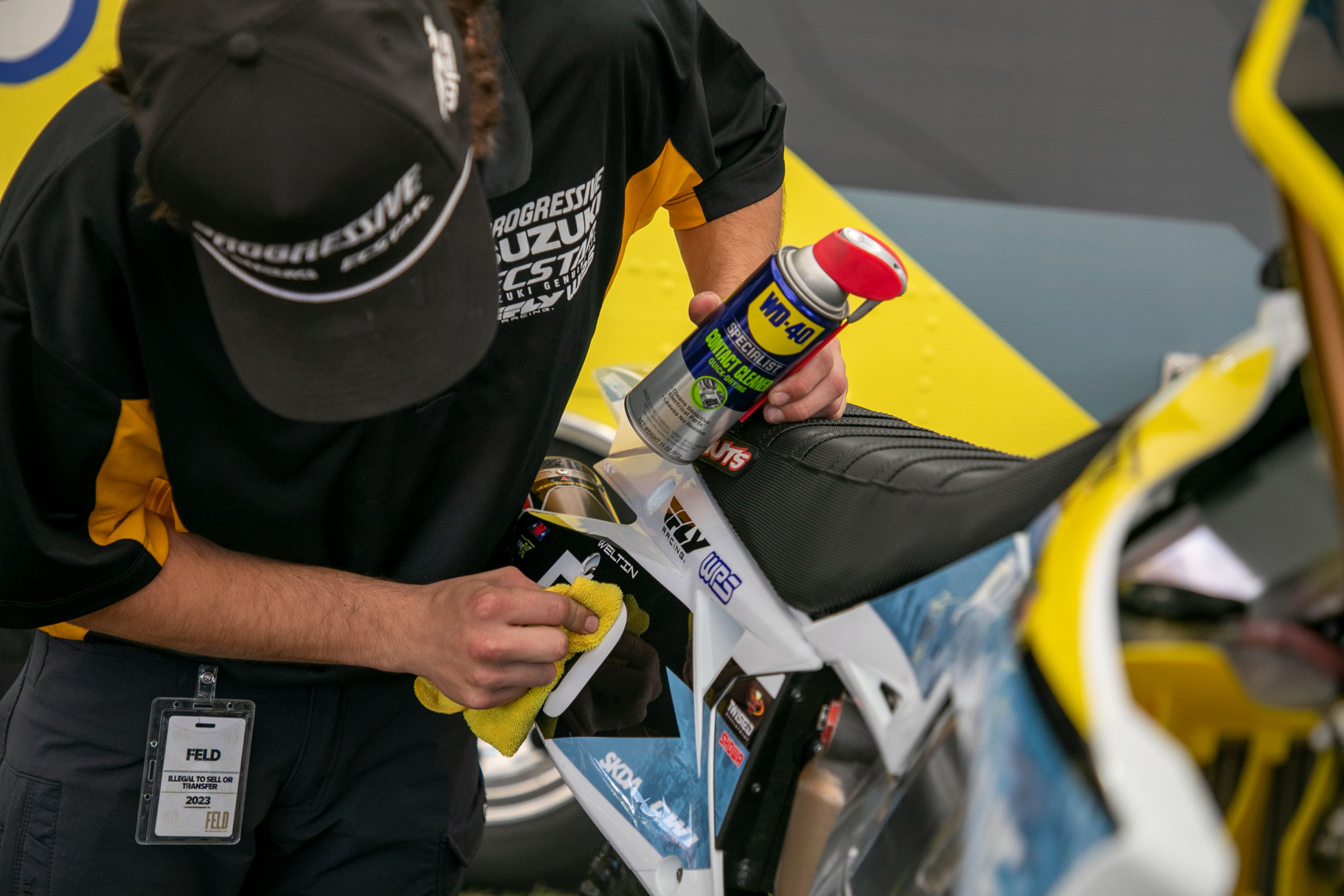 Fall is the perfect time to start garage projects, which means swapping out old parts for new. A lot of us know that having a can of WD-40 ® Multi-Use Product handy can help get old parts unstuck and prevent new parts from becoming next year’s worry. But there’s much more to WD-40 ® Brand than just the Original WD-40 Formula, and pros like the mechanics for H.E.P. Suzuki always have WD-40 Brand products, including the WD-40 Specialist ® line, in the pits and at the race shop as they get ready for race day. The team just clinched the FIM World Supercross Championship with Ken Roczen, and they rely on a variety of WD-40 Brand products, as part of bike builds and maintenance. No matter if they’re racing motocross or supercross, they need WD-40 Brand products to get the job done right. Roczen’s championship mechanic, Travis Soules, is sharing a few tips on which products he uses to maintain Ken Roczen’s Progressive/Ecstar Suzuki.