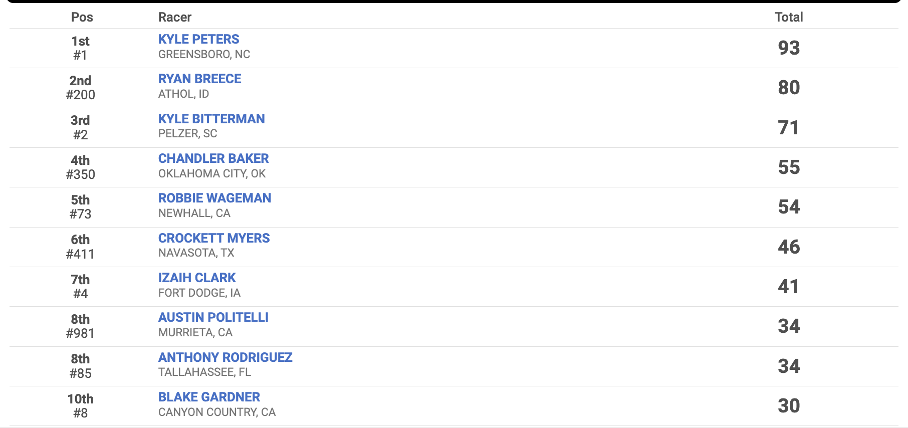 | Toby Cleveland (Husqvarna) | GNCC | XC3 |