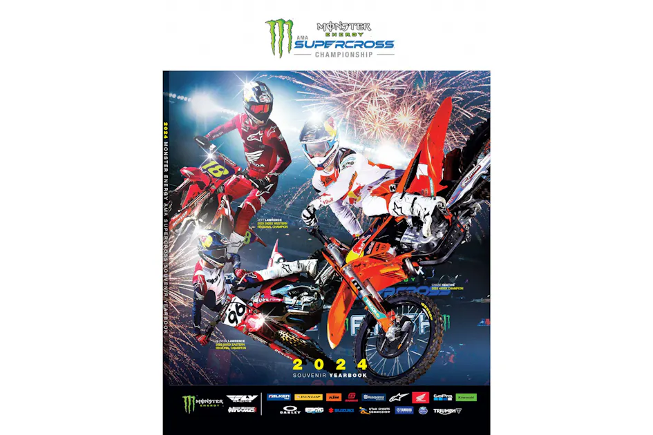 Welcome to 2024 Monster Energy AMA Supercross and the '24 rendition of the Souvenir Yearbook that we here at Racer X produced for the series. Included in the program/souvenir yearbook you'll find track maps, vital series information, schedules, stats, history, rider perspectives, rider information, a preview to what you'll see out on the track, and much, much more. This marks a special time in supercross, as we're celebrating the 50th anniversary and inside the program you'll see a detailed feature diving into some of the greatest moments we've witnessed on the track in supercross. The Yearbook is available at each round of Monster Energy AMA Supercross in print, and we've converted that to a digital flip book format for readers at home. Enjoy the racing this season, and see you at the races!