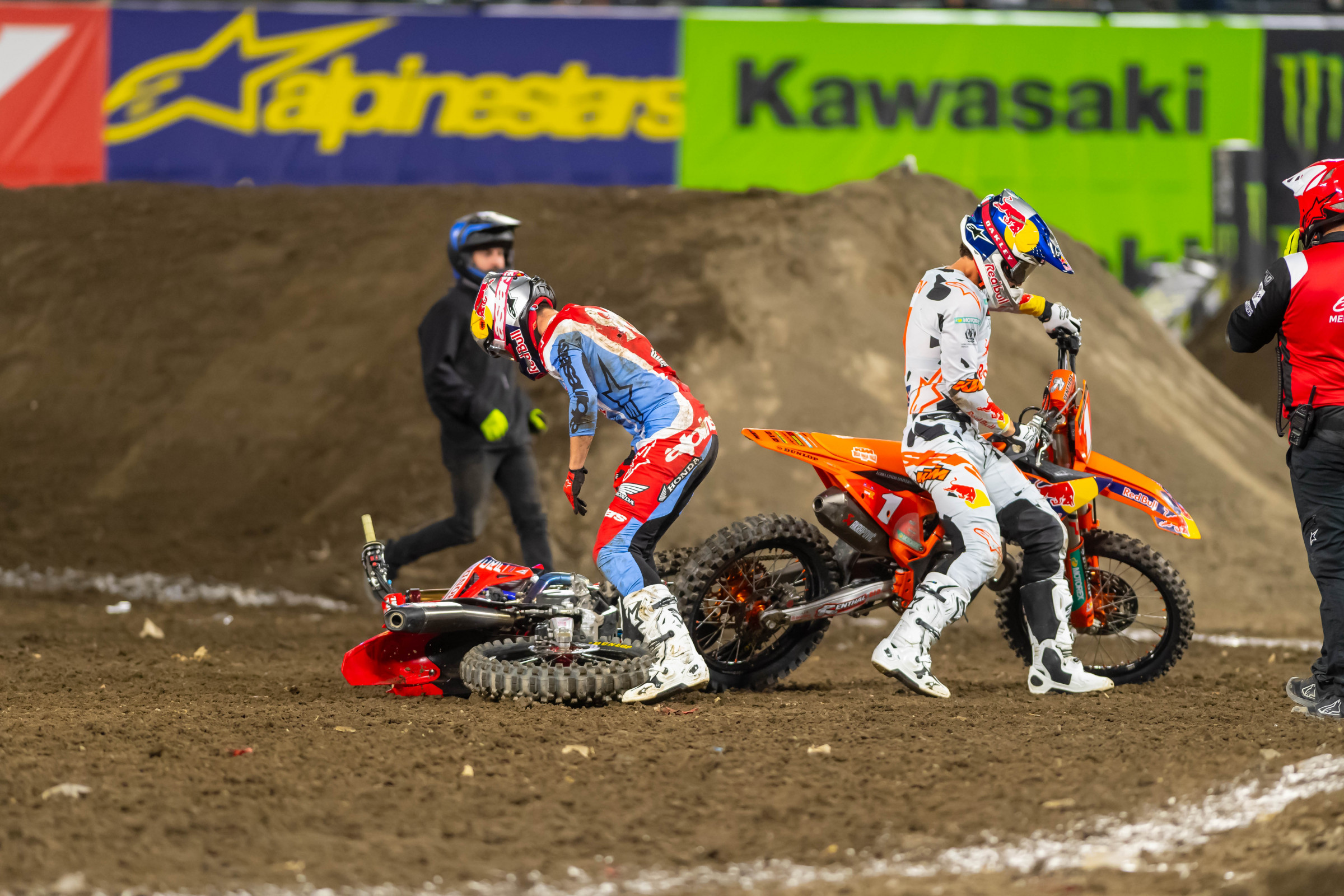 Hunter Lawrence is an HRC Honda factory rider, but he didn’t qualify for the 450SX main event. Yes, it was his first 450SX race, yes, he was in a first-turn pileup in his heat, and yes, he got screwed on the start in the LCQ. But part of racing is dealing with adversity. Is his DNQ forgivable? Why or why not?