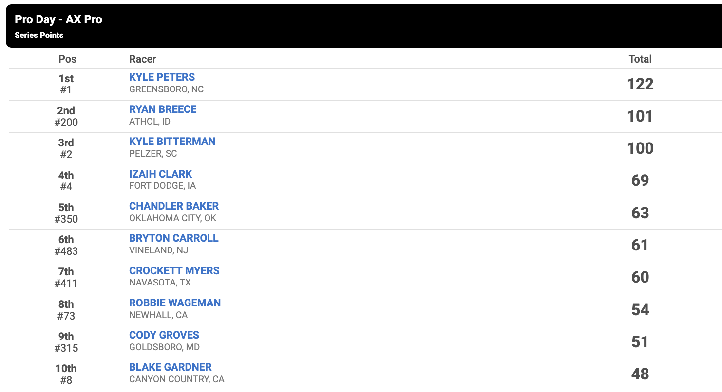 | 2 | Cooper Webb | Newport, NC | 336 |