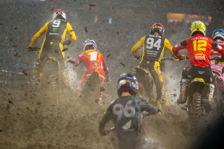 I don’t think it was necessarily a signal for how the season will go. Mud races are their own animal. I would just take it for what it was, a great points haul and first win on Red Bull/KTM. Make no mistake, all of his foes will be back with a vengeance at Snapdragon Stadium next Saturday. He will have to prove he can win on a dry racetrack before I am going to be convinced he’s the same Sexton of 2023. This was a huge night and he should be ecstatic, but the work is far from done.