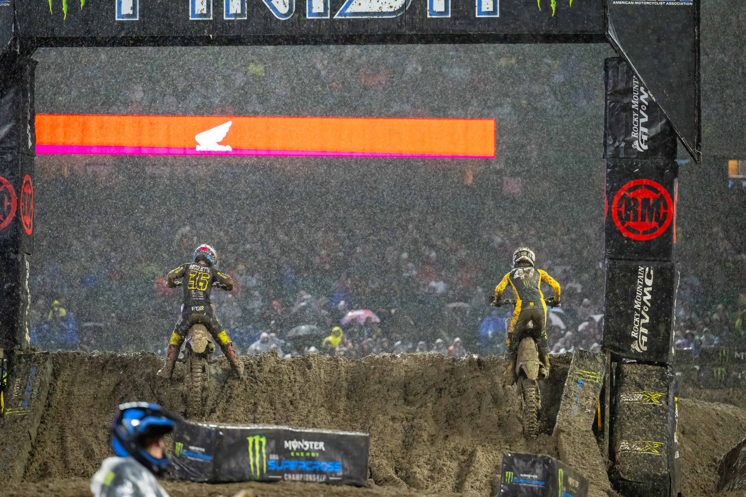 I get Feld's deal of not doing those track changes before because they're hoping the rain is not going to be as bad. But this morning they easily could have been like, “Alright, we're screwed. We got to make some changes.” Or just ask the riders like, “Hey, do you want us to mellow the track out?” and then we'll just come to a vote and be like, “Yeah, we'll be okay.” And I think we all would have been ok to be like, “Yeah, mellow it out” because dude, to try and get a fast lap how it was with one practice, it's like you're seeing God out there one too many times trying to make those Supercross triples. So, I'm glad they made those changes and then they changed the whoops, which they kind of did that in Seattle in 2018. They left them for the heat race and then the main, they took them out. Which was kind of smart because the whoops are actually the hardest part in the heat race.