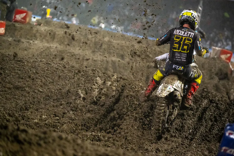 You and I both were saddened. I wanted to ride my scooter into oncoming traffic on the way back from the stadium to the pits after the main. Wish it was a little better, but it for sure could have been a helluva lot worse! But Sexton’s start was absolutely insane. Insane. When I watched it on TV in the pits, I thought for sure he jumped the gate. He had such a gnarly jump he caused Aaron Plessinger to do a burnout bigger than Dale Sr. at Daytona. That was literally a do-or-die move. I’m not sure if he’s said the gate flinched or not. Haven’t heard his thoughts on it. But that was a power move, regardless, and saved him from a shit ton of chaos. He almost threw it away in the first corner, but he got it done. But if Chase guessed that I hope he went and bought Powerball tickets, because his luck was all time that night.