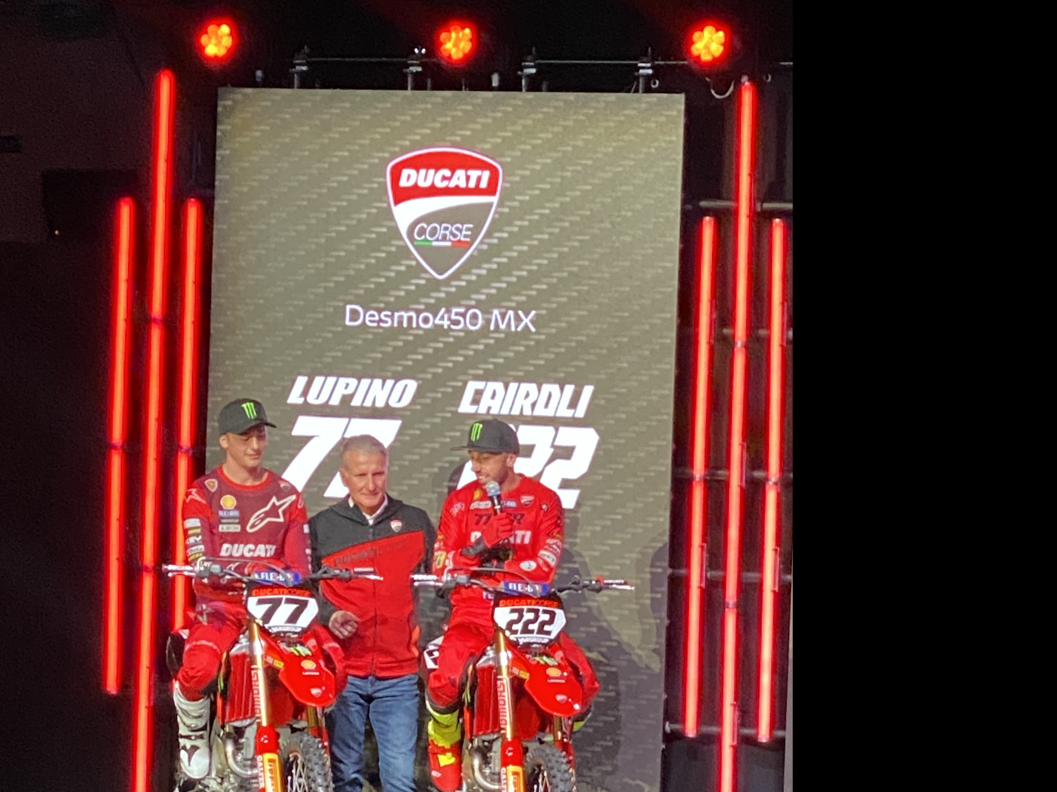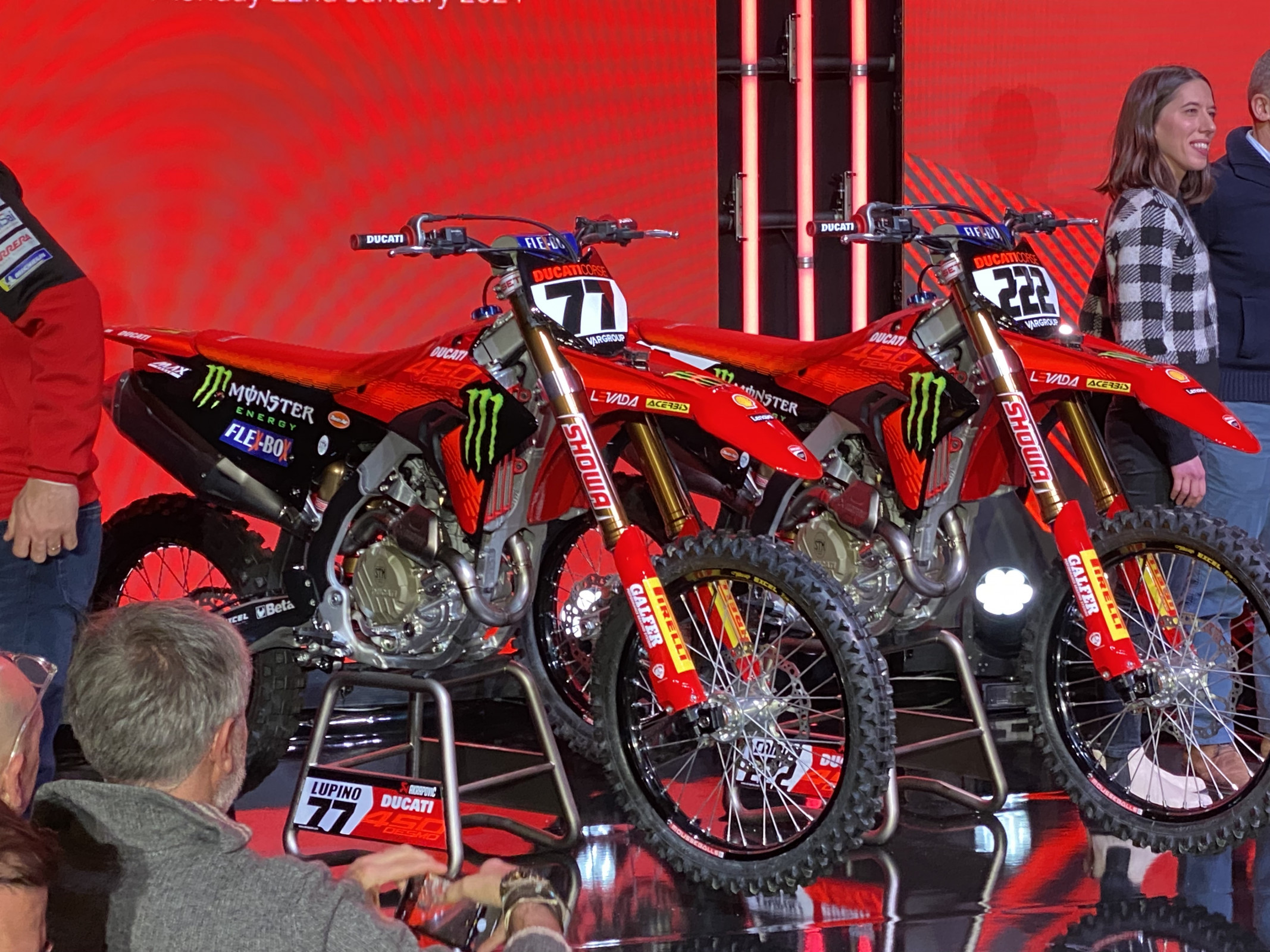 Let me say here that Ducati means business with their whole entry into the supercross/motocross/off-road world. When they pulled the covers off the bright red motorcycles with the #222 of Tony Cairoli and the #77 of Alessandro Lupino on the plates, Ciabatti stressed that this was simply a moment of introduction, and that neither he nor the riders nor others engineers would go into technical details because these were prototype Desmo 450 MX bikes that would be going through many changes before production was scheduled to start in the second half of 2025, if all went according to plan. So, we did not learn of the bike’s weight, nor did we hear what it sounds like, nor how much it might cost. What we did see was the fact that all of the other successes Ducati has had in motorcycle racing in recent years, they have every intention of succeeding in MX too—and with their trademark Desmo valve system. In the meantime, the retired-from-racing Cairoli will be the primary development rider, and he may even pop up in a race or two in the upcoming Italian Nationals where Lupino is slated to get the Desmo 450 its first gate drops. In 2025 Ducati plans on racing in MXGP (where works bikes and prototypes are allowed) and maybe even the Grand National Cross Country (GNCC). And then in 2026, after at least 400 Desmo 450 models are built and the brand is homologated with the AMA, then they will race in Monster Energy AMA Supercross and the AMA Pro Motocross Championship. They are looking for an existing team to partner with, hopefully on the East Coast, and while I have a few guesses who they may be talking to, Paolo would not confirm or deny anything.