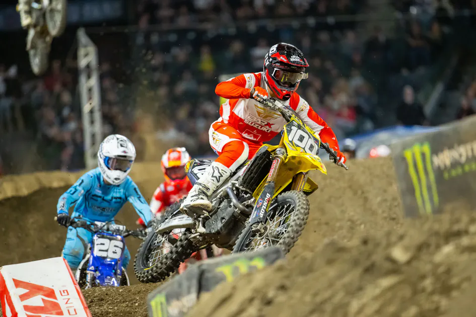 It’s impressive! He has a lot of supercross experience, albeit European. He has done well against these same riders in Paris, so I believe that helps him with confidence. The other variable is that he’s starting very well and putting himself in position to succeed. He deserves a lot of credit for what he’s accomplishing, not to mention he’s likely down on power compared to the other factory bikes he’s battling.