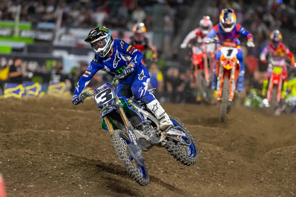 Who was more pumped over race three of the Anaheim Triple Crown? Was it the fans who went crazy when Eli Tomac emerged in the lead early in the race? Or was it Eli himself, sporting a wide grin that was half elation and half relief on the podium? Even Eli Tomac, as gritty and stoic as they come, a man that sits second on the all-time AMA Supercross wins list, needed a little confidence jolt coming off of last year’s Achilles tendon injury, and a lowly ninth at the only dry race this year, at Anaheim 1.