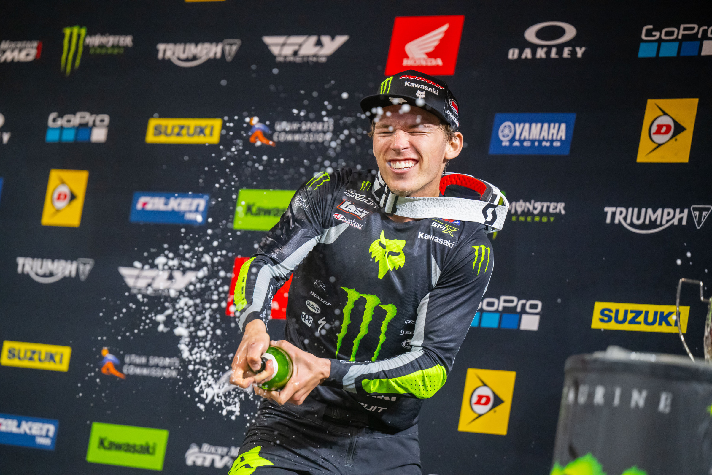 “I heard it going in, we started braking,” he says. “I could hear tires grinding and bikes clanking, and I knew that there was some sort of a pile up or else guys just got really sketchy. And then whenever I came around, there were still guys down, I think both of my teammates were still down and, and I saw KTM, I think I had to weave. That's why I feel like this one was so special to me because I was there last year. I was there. I blew my knee out. I was done for the season last year in a very similar deal except it was just me.”