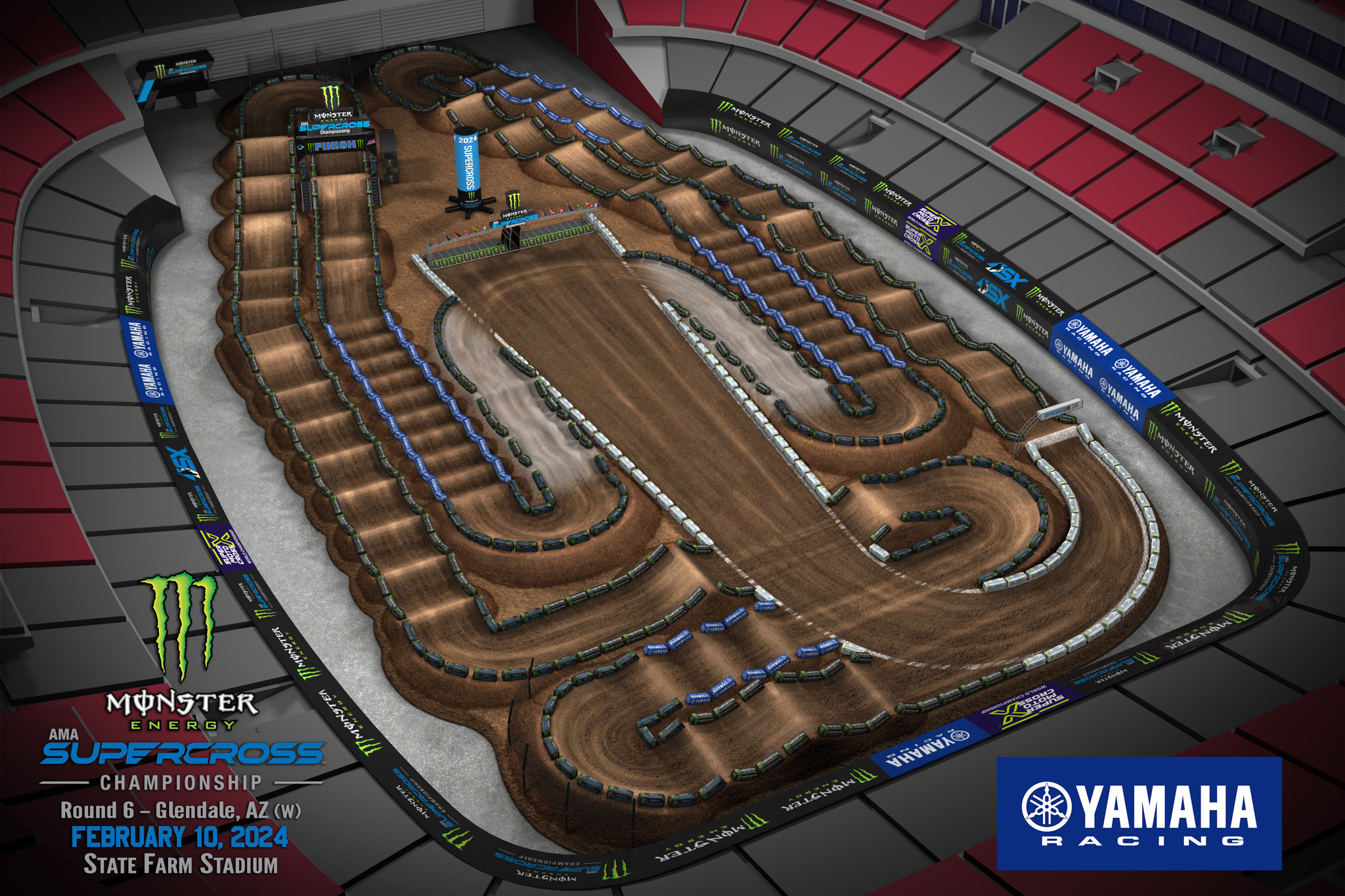 True to form, this track is massive. Spanning the entire length of the extended floor (State Farm Stadium has a huge opening at one end where bleachers would often be), there are long lanes and huge rhythms. The start is placed right in the middle of the track and not as long as we have seen here before. It bends into a long left hand 180 which should give plenty of room for maneuvering, the opposite of what we saw in Detroit.