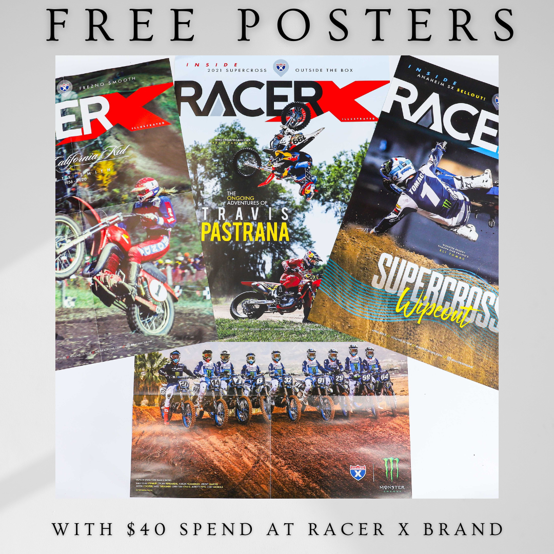 When we’re on the basketball court, we’re posterizing dudes with mammoth dunks all the time. We could easily turn these highlight reel moments into rad photos and posters, it’s just unfortunate we only know how to shoot photos of motocross races. You’ll have to trust us when we talk about our hops in the paint. But man, we are good at shooting dirt bike photos. We use those pics to create the rad covers of Racer X Magazine every month, and then we turn them into posters you can hang on your wall. While we’re hanging from the rim, you can be hanging with you buds in the garage, man cave or wherever, talking motocross.