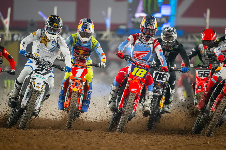 It’s a rare occurrence in a Monster Energy AMA Supercross Championship where five rounds into the championship, the only rider with multiple wins on the season is not the points leader. But that’s exactly what we had rolling into the sixth round of the series on Saturday night inside Glendale, Arizona’s State Farm Stadium. Honda HRC’s Jett Lawrence was fresh off his second win of the season in Detroit the weekend prior but did not possess the red plate as the points leader. Instead, defending champion Chase Sexton saw the plates turn back to red aboard his Red Bull KTM leaving Detroit with a solid second place finish. Due to the ever-changing results week after week through six rounds, the points truly had never been closer among the top six riders in the series through the first five rounds of racing in the history of the sport. Sexton sat just one point up on Lawrence, two points up on Aaron Plessinger, six points up on Cooper Webb, 14 points ahead of Jason Anderson, and 16 markers above Eli Tomac. But the craziness didn’t end there, because when the checkered flag waved in Glendale, none of these riders would cross the finish line first.