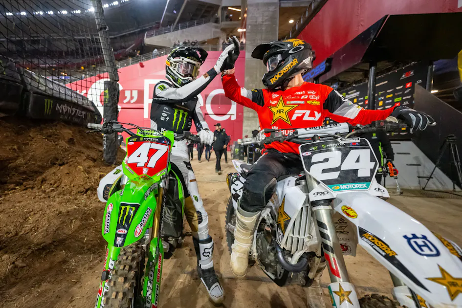 After a week off for the 250SX East Region opener, the 250SX West Region returned to the track for their fifth round in Arizona. Levi Kitchen and Jordon Smith entered the Glendale Supercross round tied for the championship lead, but it was third-place RJ Hampshire who came away with the main event win—even though all three riders led laps in the main event.