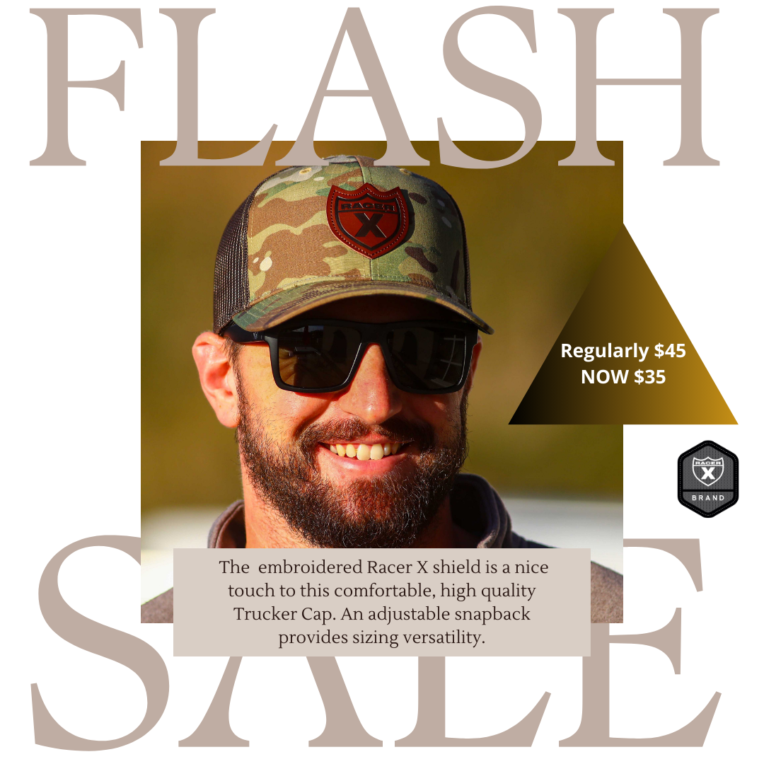 We feel ya.’ Racer X brand offers this premium trucker hat replete with the camo look and the adjustable snap back fit. But just to add a touch of class, we throw in a leather Racer X shield logo. It might just match the seats in that sweet rig you’re dreaming about.