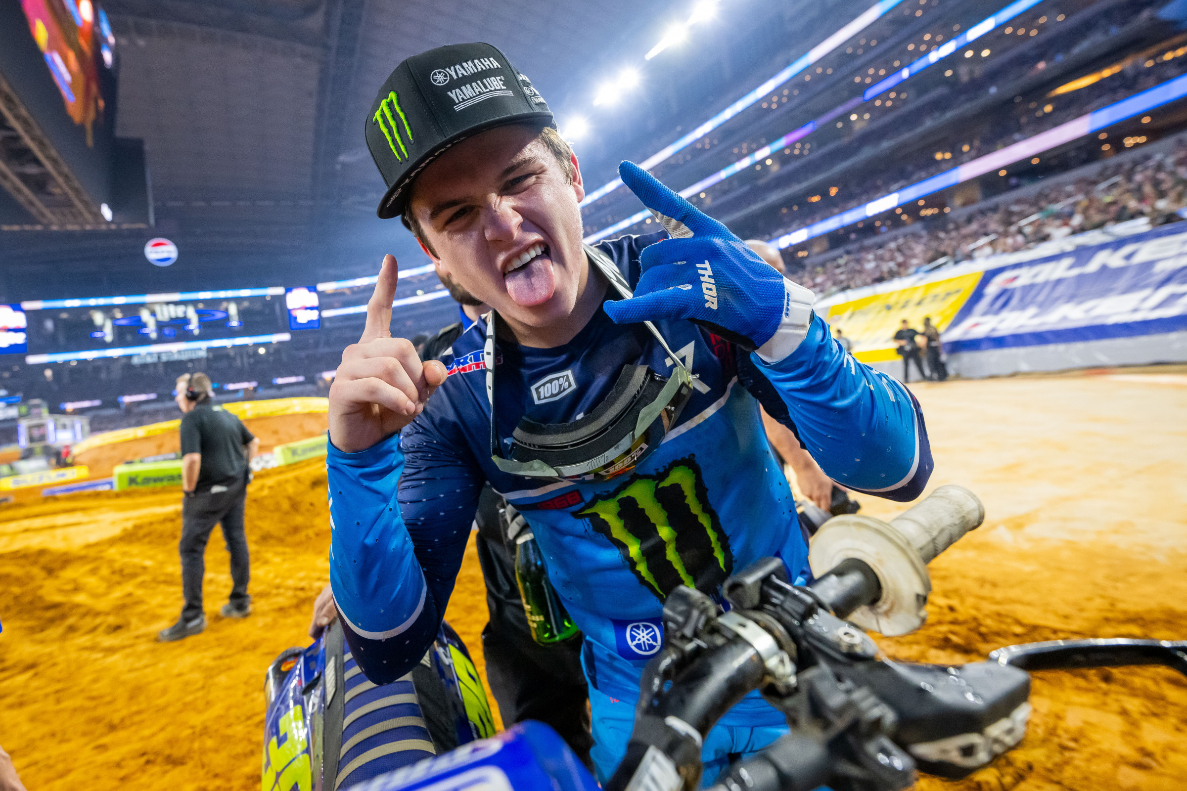 With victories in the AMA Pro Motocross Championship and the SuperMotocross World Championship (SMX) last year, plus the SMX Championship, it seems strange to hear Haiden Deegan is yet to win a supercross race, but here were stood until Arlington, when he snagged a victory. There's much to talk about after this one, including Austin Forkner's ugly crash while leading, and Deegan's own bounce back from an off-season wrist injury and a brutal first-turn crash at the 250SX East Region opener in Detroit.