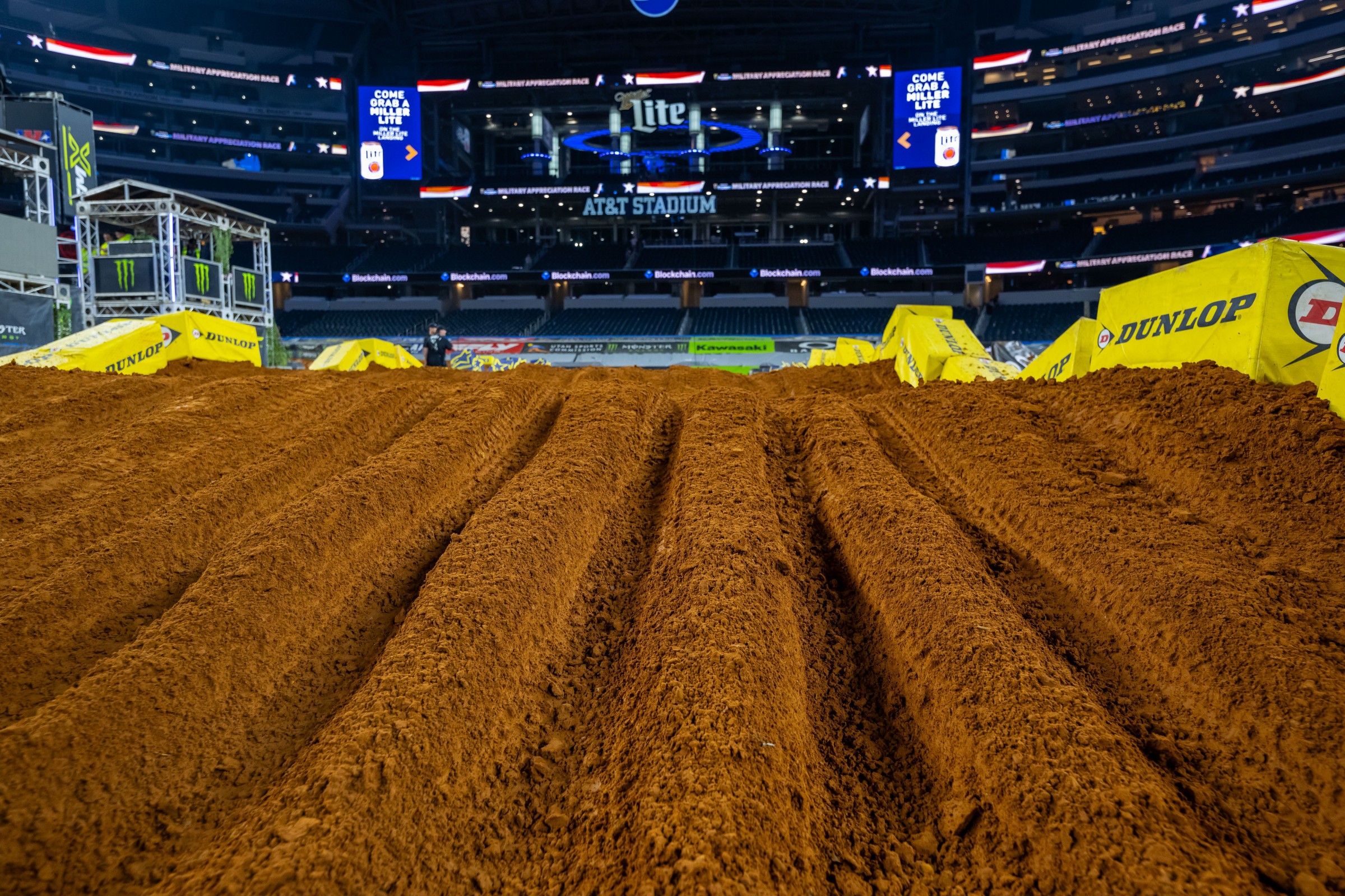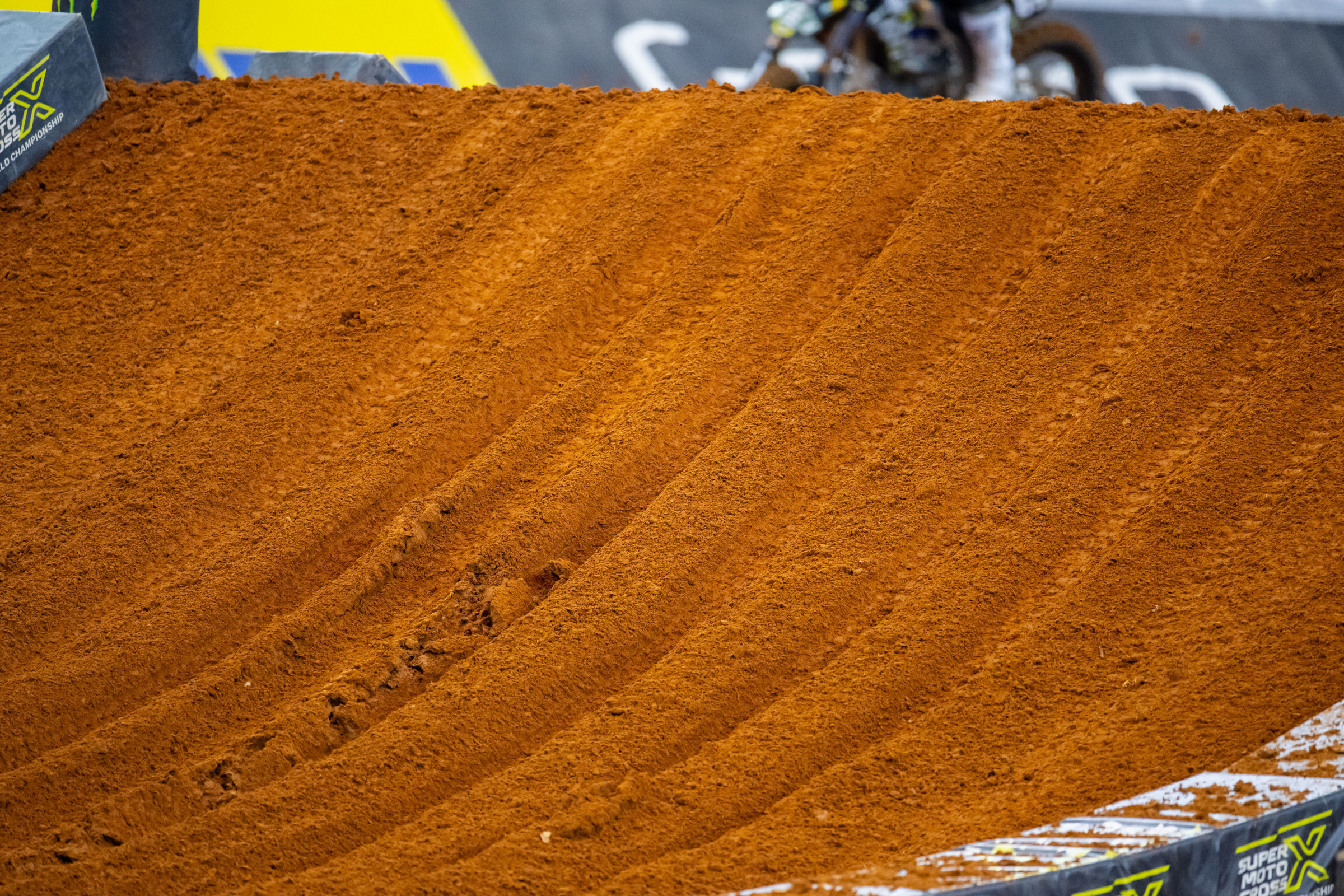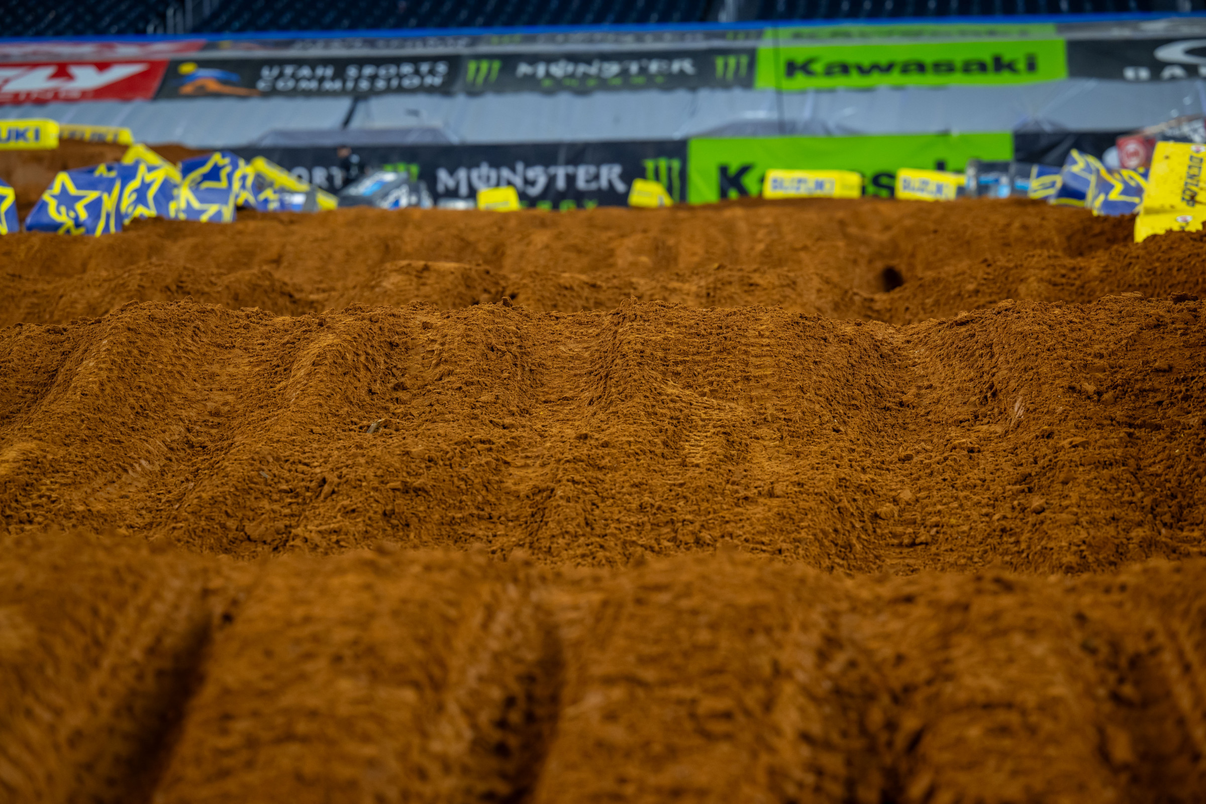 There was a big contrast between the dirt that laid as the base and the dirt that was moved often for the jumps. Walking around on the floor of the stadium, the base dirt was rock hard. The rest of the soil that was used was much softer and more pliable. When ruts worked down through the softer top layer to the base, that’s where the wheelspin arose. It is very challenging for a rider to anticipate when and where that differentiation would occur, and why you saw riders get surprised at times. Overall, the dirt was much better than typical Arlington, but that base-to-filler contrast was a doozy.