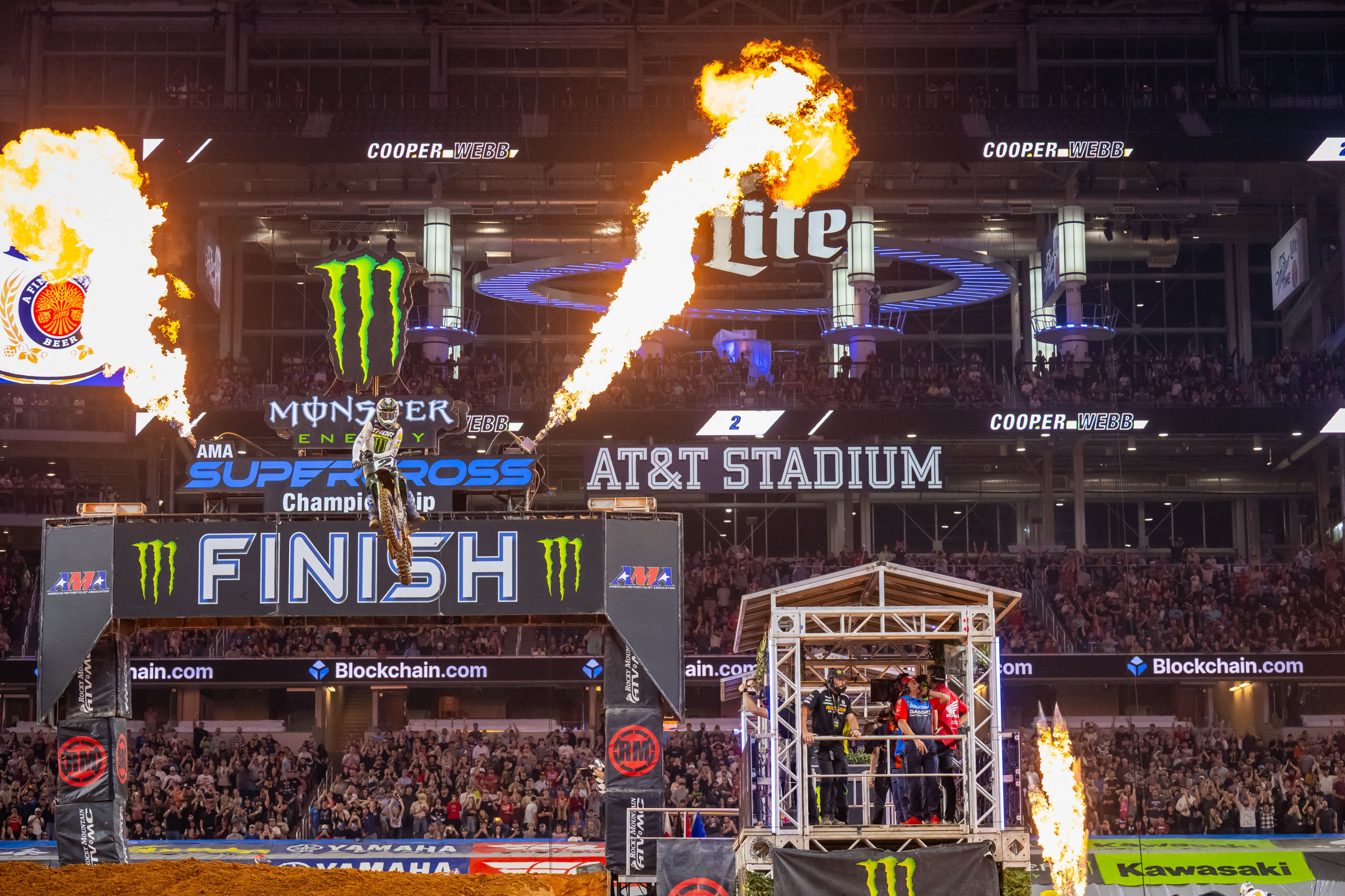 A glance at this year's Arlington Supercross makes it look much like those in the past, with Cooper Webb sneaking off with a close victory (he's the all-time leader for wins at AT&T Stadium, with six victories). But this one actually wasn't the same. Webb was against the ropes in qualifying and his heat, even more so than usual even though Webb is not known for qualifying speed, and in the main, he most likely wasn't going to get to leader Jett Lawrence. Then Lawrence crashed, and Webb found himself having to fend off a challenge from behind, which is the opposite of how these races usually unfold. Could Jett have pulled a last-lap pass on the master of the last-lap pass? We'll never know, because Jett ran into the back of lapped rider Vince Friese.