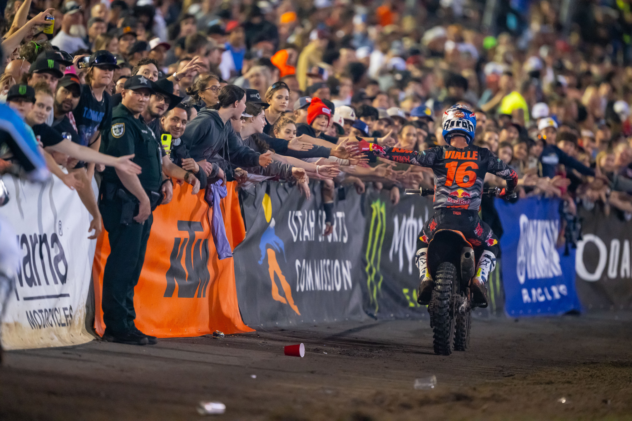 The bigger question is, following a third-place finish last weekend at AT&T Stadium in Texas and this victory, is Vialle ready to win on a more traditional supercross track? He's looking forward to finding out that answer himself.