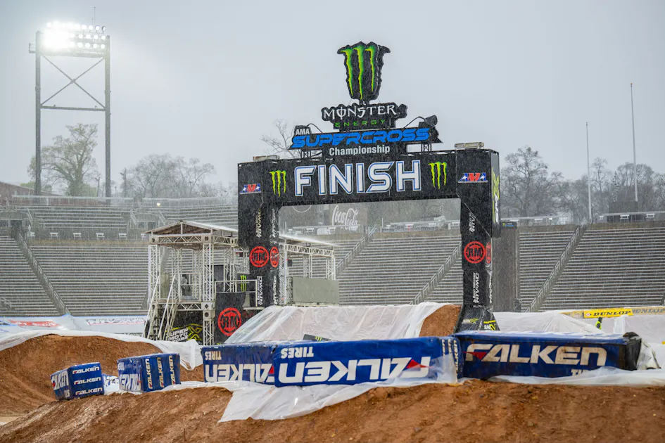 Now we’re off to Birmingham where, unfortunately, rain has been either threatening or happening all week. Feld Motor Sports tells us the Dirt Wurx track crew is setting everything up on a “rain footing” which means things like making the obstacles less steep, keeping the track covered today, and being ready to make some adjustments to the race-day schedule, just as they did at Daytona where the rain canceling the second round of timing in the hopes of saving the track. And as everyone has seen, rain has been Jett Lawrence’s Achilles heel so far, at least on one boot; the other has been his own mistakes. Lawrence was ninth at San Francisco and fourth at San Diego when we had weather. His late-race mishaps cost him Arlington. The rain could not happen at a better time for his competitors, as Cooper Webb has slipped back to 10 points down, Chase Sexton 13, and Eli Tomac 16. The scary thing is the idea that Jett, like Ricky Carmichael back in the day, will figure the mud thing out. It seems like it’s a matter of when, not if…