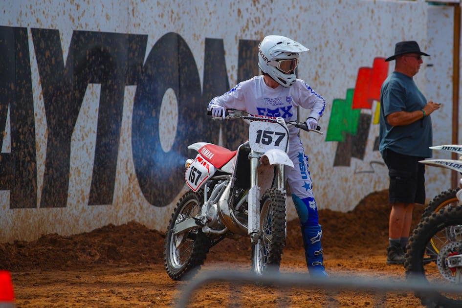 Our own Mitch Kendra and MX Sports’ Derek Garcia were at Daytona International Speedway for the 2024 Vintage Supercross to capture all the action, from the pit scene, to the starting gate chatter, to the motos, to the post-race celebrations. The vintage event included old school bikes, modern bikes, veterans in the warrior class, young kids on two-strokes, a women’s class, an open electric class, and more. When Mitch went to race the modern open classes, he handed off the camera to Derek Garcia. Check out some of their best photos. Follow Mitch on Twitter: @Mitch_Kendra.