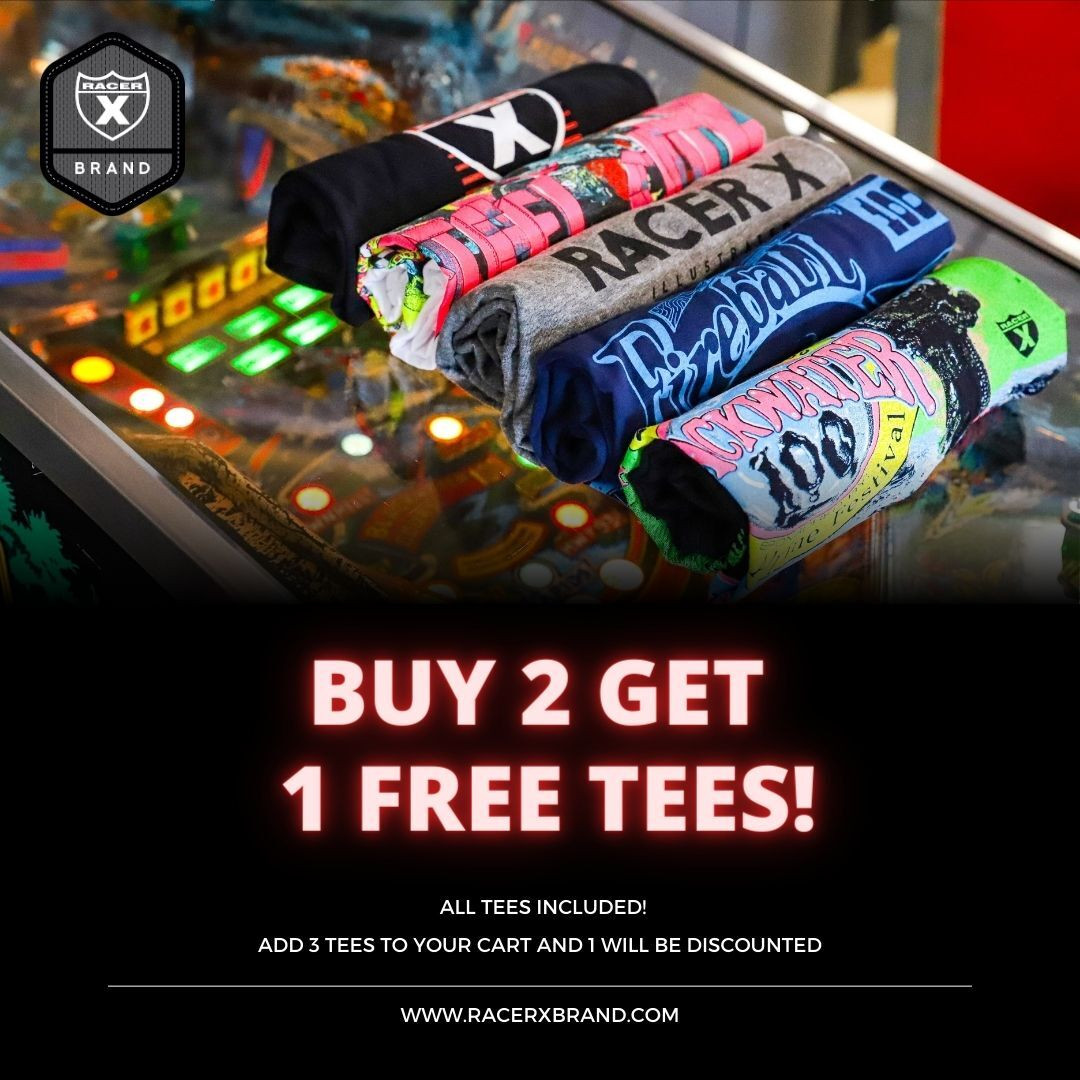 Literally! Our brand department is running a buy-two-get-one-free shirt deal, which means they’re giving away a freebie. Just peruse our collection of men’s and women’s shirts and create your collection of three, and one will be free. It rhymes so you know it’s true.