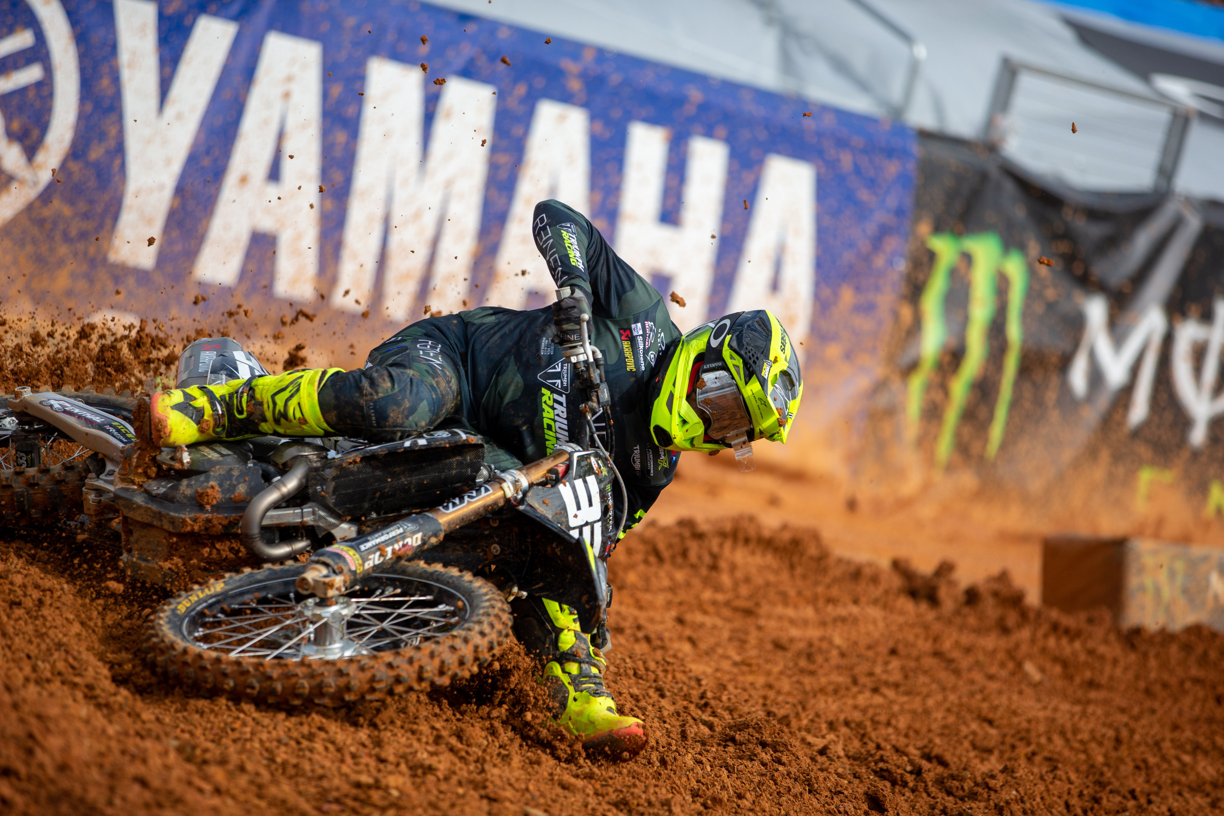 All these years later Triumph is back, but it is a much different bike and company (the original company changed hands a couple a few times). It is obvious from their efforts in 2024 in both Monster Energy Supercross and the FIM Motocross World Championship—and coming this summer AMA Pro Motocross—that the current incarnation of Triumph is up for the challenge of competing at the highest levels in SX/MX already. And while Haarup got them their first podium in MXGP, Swoll had a real shot at the Birmingham podium the night before until a late-race tip over saw him fall back to sixth.