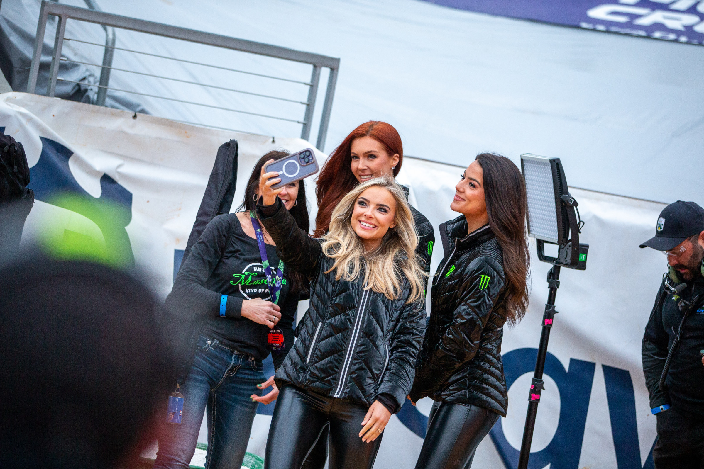 So, let's start with the Monster Energy girl. That brain endo that saw her cross a hot track to get the 30-second boards was one of the strangest moments I've ever seen in a supercross, and I've been watching for all 50 years. Fortunately, she did not really affect the race, and she was a good sport about it afterwards, but holy smokes that could have been really, really bad, and not just embarrassing bad. Fortunately, she was not hurt, and both Jett Lawrence and Cooper Webb got by her basically unscathed, though it must have been in both of their heads for at least a lap or two. The good news here is that the 30-second girl who turned the card sideways 14 seconds too early at Budds Creek in 2009 is no longer the most notorious starter girl of all time—it's now Miss Birmingham.