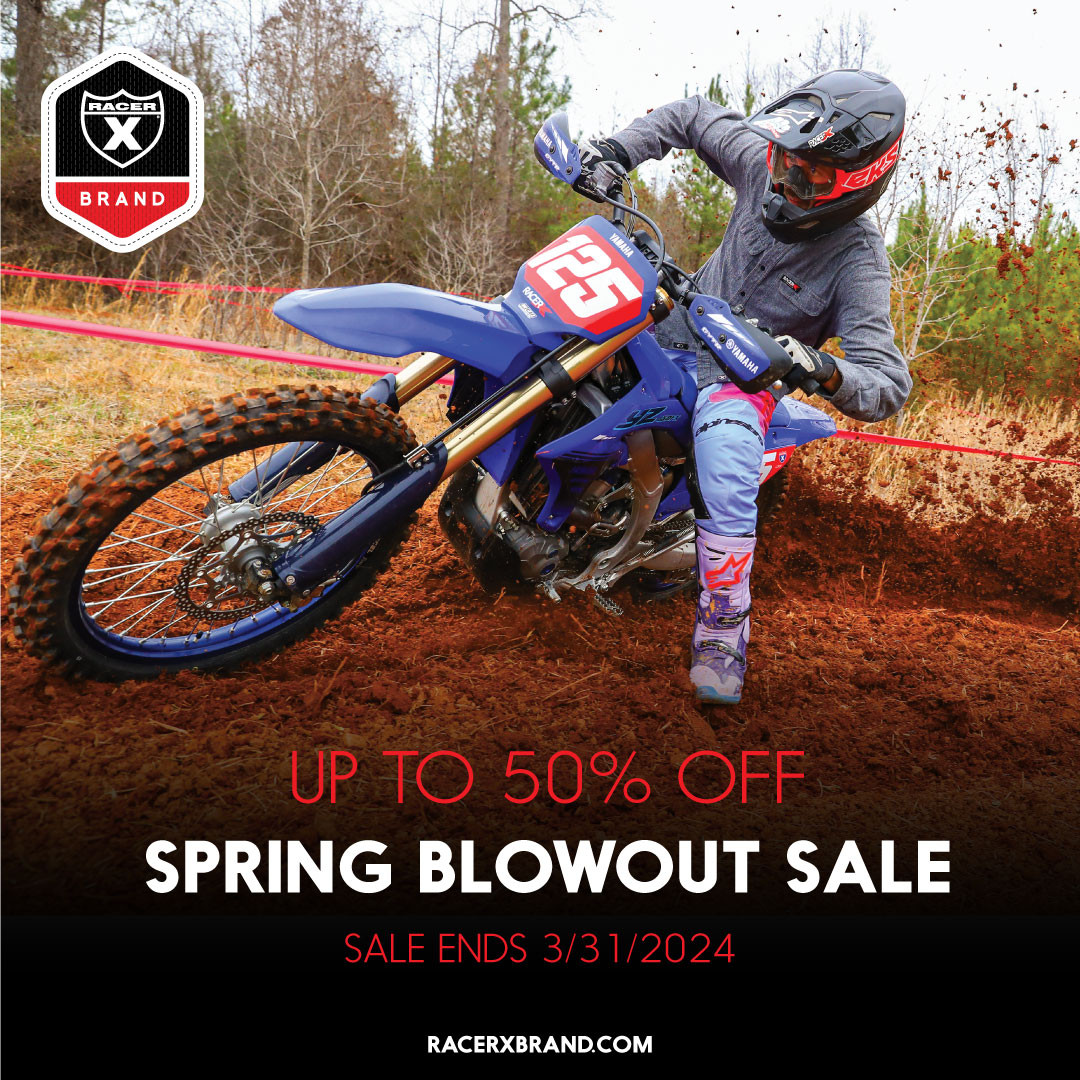 We are having a Spring Blowout Sale to clear out the shelves over at Racer X Brand. One could even call it a “Merch Madness” sale in honor of March Madness being right around the corner? Anyway, head over to racerxbrand.com now and take advantage of some heavy discounts across the entire website. Sale ends on March 31, 2024: