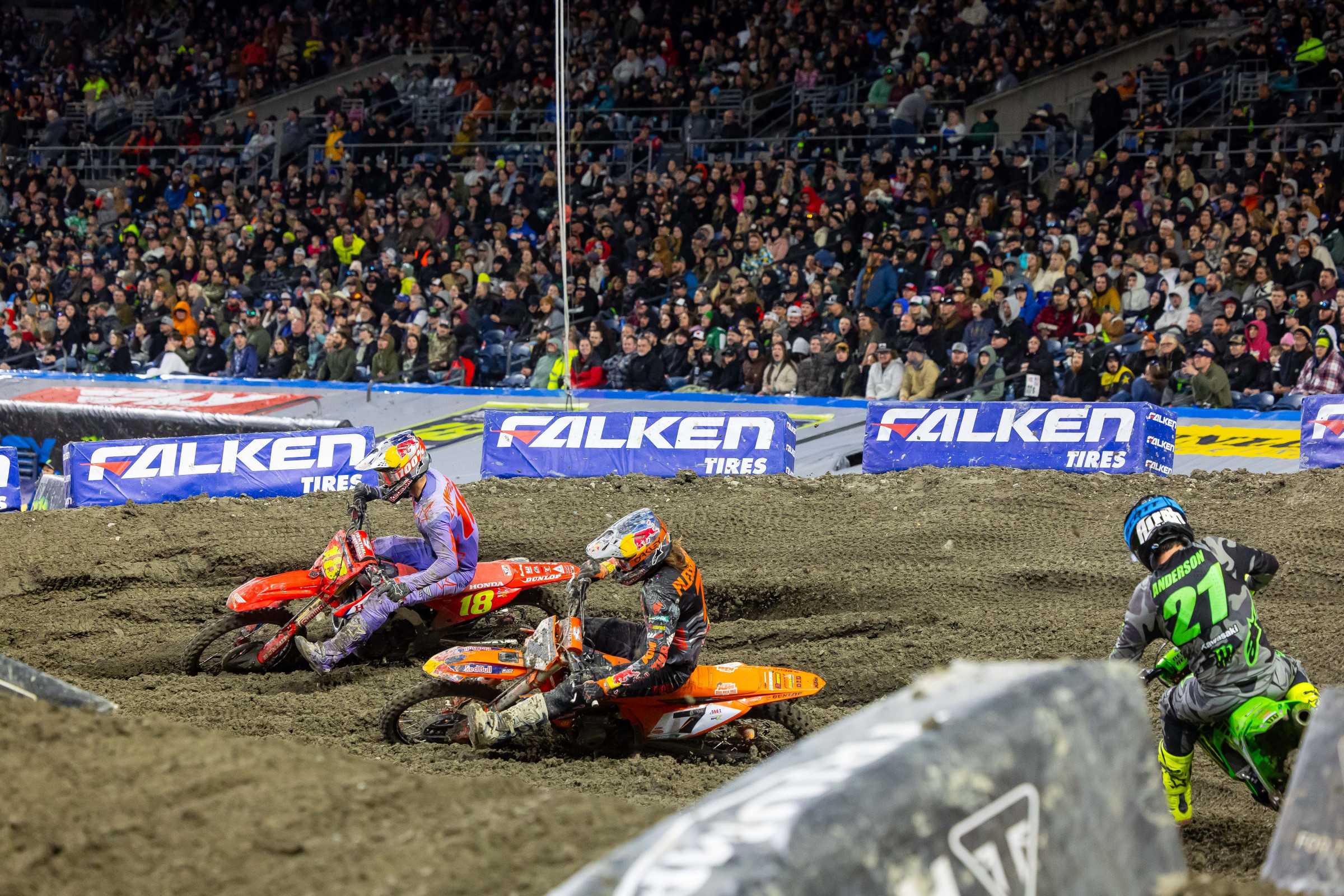 Earlier this season, Aaron Plessinger was on top of the world—literally, he had the points lead! But racing is nothing if not a roller coaster, both in results and emotion, and things took a turn for the worse in Daytona, where Plessinger crashed while running sixth and finished 18th. Plessinger now sits sixth in the standings and is 50 points out of the lead. But, as we saw in Seattle, the cowboy has plenty of fight left in him—he battled Jett Lawrence hard in the heat race, and earned an extremely solid fourth in the main. We spoke with AP immediately following the race to get his take on a great weekend.