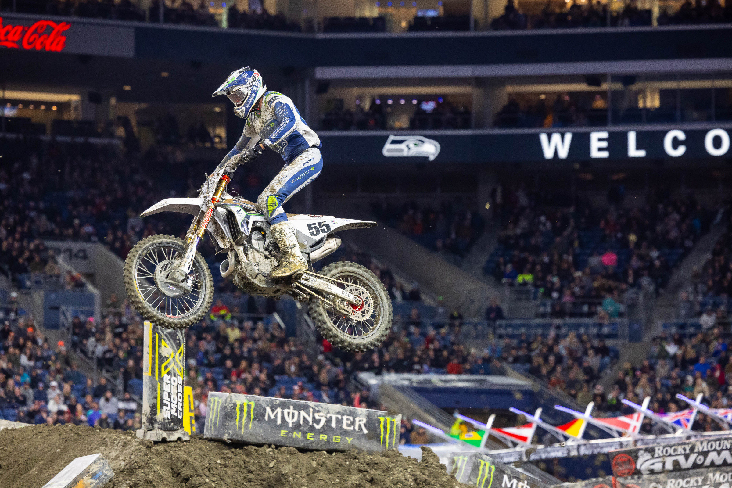 To ride, probably the 450, but to race I would have to say the 250 just for the simple fact that the top two, three guys aren’t going to stop jumping the jumps. That’s where it gets hairy and kind of one of the reasons why I wanted to go to the 450. When the track gets chewed up like that, I’m past that point of sending it and praying basically to make it. Because at that point, at these softer races like Seattle and Indy and these tracks that get so gnarly in the main event, the longer you can do the jumps, the better you’re going to do.