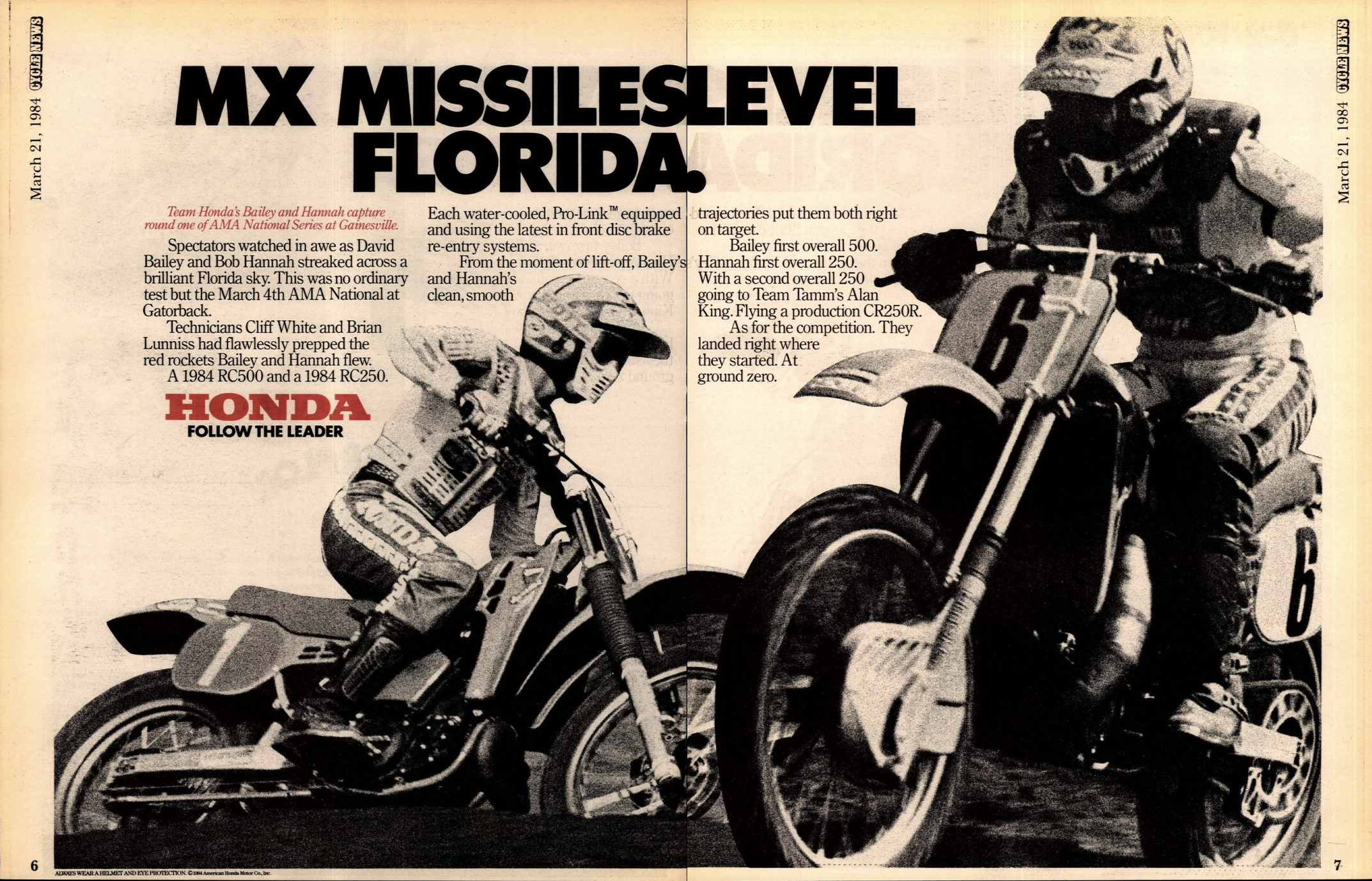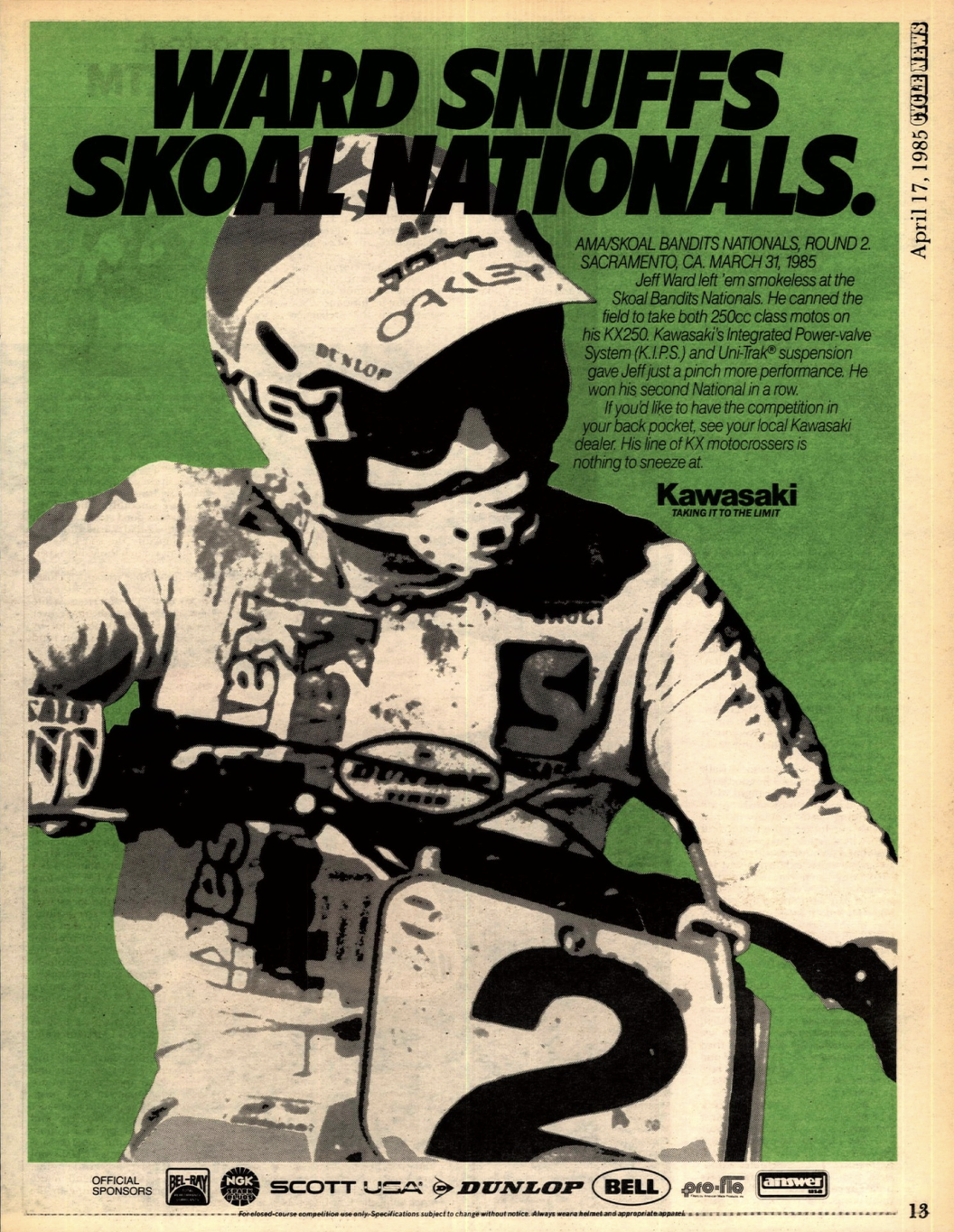 "Win on Sunday, Sell on Monday" used to be the way sponsors and advertisers approached their motorsports investment. The concept is still there, only now it's also "Win on Saturday, or even Friday, Sell on Monday." And we can always find proof of that in our email boxes every week when the latest issue of Cycle News shows up. Take last weekend, for instance. Eli Tomac won his first race of the year with a 1-1-1 sweep in St. Louis on Saturday night, Cooper Webb finished second overall but ended up as the champion of the series-within-the-series, the Triple Crown Champion, and Levi Kitchen is still cooking with a 1-1-1 sweep of the 250 class. Also last Friday, Kyle Peters captured his fifth straight AMA National Arenacross Championship, the first title rewarded in 2024. All of this was reflected in the digital pages of Cycle News as the various sponsors of each of these winners and champions got in on the celebrations. One day we need to get someone like Eric Johnson do a magazine deep-dive on the whole history of win ads, which are as much an art in the publishing business as choosing the right cover! And I have a collection of win ads from Cycle News and other publications that goes back to even beyond the very first Superbowl of Motocross at the Los Angeles Coliseum. See if you can pick out which one it is...