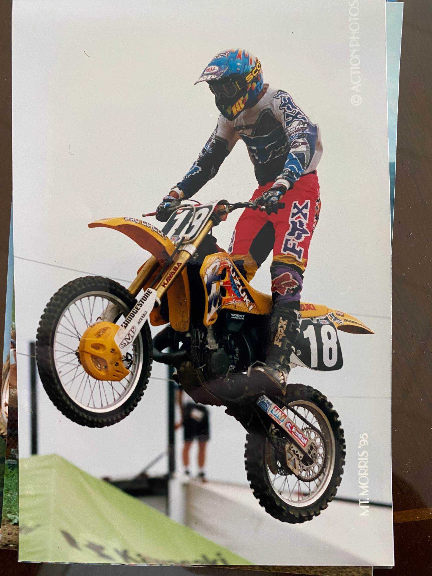 While looking for some old photos this week I came across a few of Denny Stephenson from his days in the 125 Nationals with Team Suzuki, shot by the great Thom Veety of Action Photos fame, so I texted them to Denny as he recovers from his stabbing wounds. That led a phone call and soon we were bench-racing just like the good old days. We didn’t go into the details of the whole road-rage situation that led to his hospitalization, but he was in great spirits and laughed when I told him that while it was a crazy thing to happen to anyone, it was barely on the podium of crazy things to happen to Denny Stephenson! He laughed and responded that his lifelong friend and former teammate Buddy Antunez basically said the same thing. I’m really glad that the whole deal did not turn out worse for Dennis, and we can all look forward to seeing him at the races here again soon.