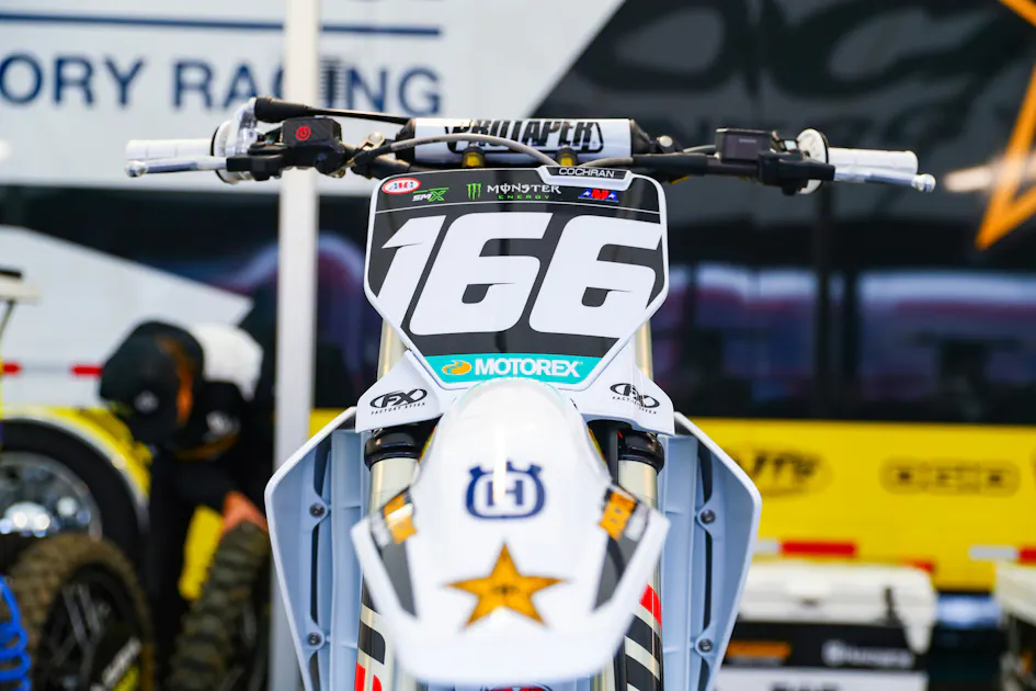 After racing two Supercross Futures events this year, Casey Cochran will be making his debut in the professional 250SX East Region Class at today’s Foxborough Supercross. The 2023 250SX Futures Champion quickly turned from the B class last year at the Monster Energy AMA Amateur National Motocross Championship at Loretta Lynn’s Ranch to the A class immediately following. Quickly, he raced a few A races and earned his professional AMA Motocross license then raced the 250 Class at the final two rounds of the AMA Pro Motocross Championship. However, since Cochran was a B level rider in 2023 when he won the Supercross Futures Championship finale, the Rockstar Energy Husqvarna rider needed to earn his A supercross points in order to get his AMA Supercross professional license. So, he raced two Supercross Futures events—Daytona (third) and St. Louis (seventh). Now, the #166 machine is set to make his professional Monster Energy AMA Supercross debut at Gillette Stadium. Tom Journet caught up to the #166 on Friday.