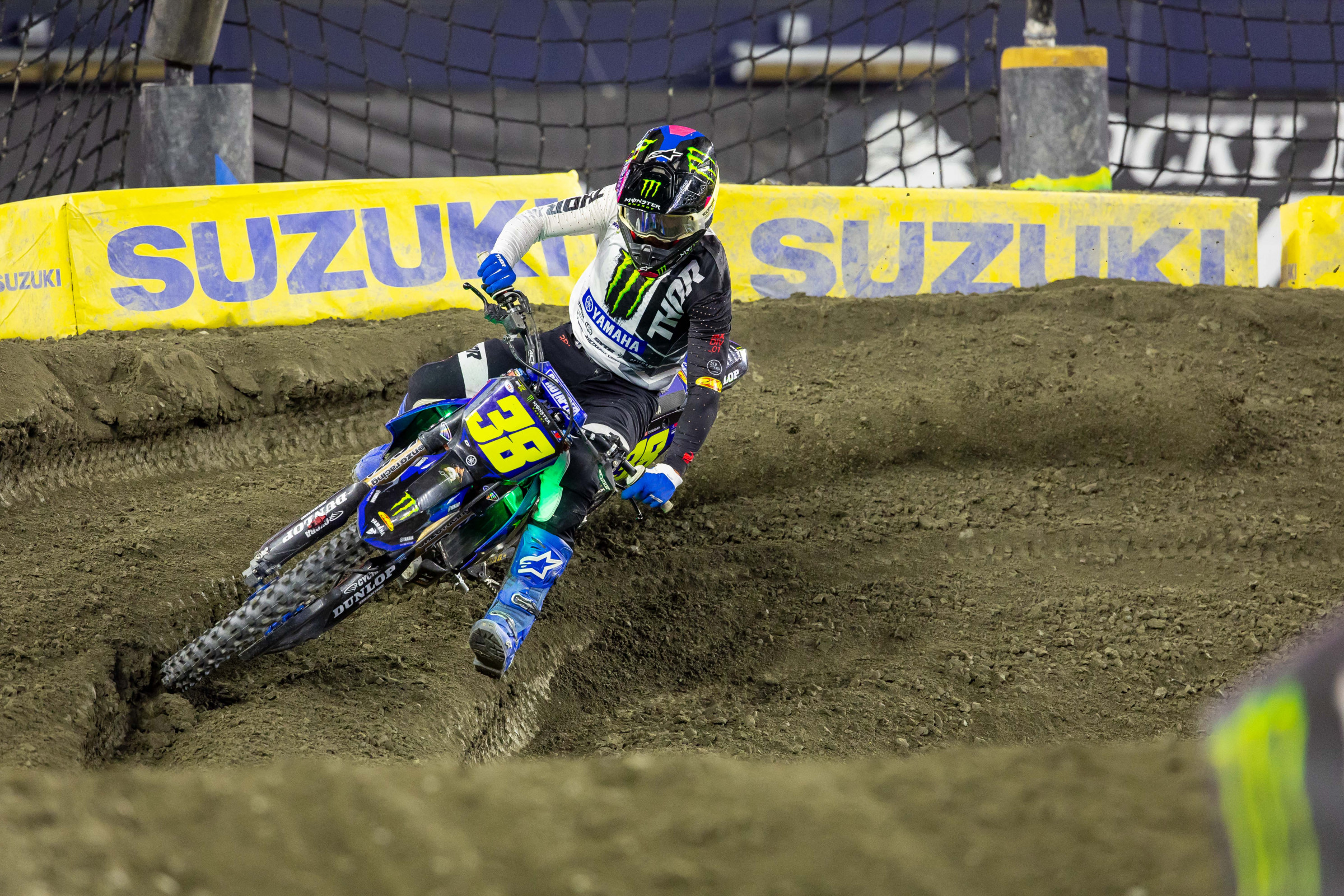 “I've been a guy where I don't really intend on my bike set up to do good. I feel like I can just switch my mind on when it's race time and just deal with what I'm dealt with,” he says. “Like I can adapt to it, but obviously, bike set up when you have your bike right, it's a perfect 100 percent good race, but when you don't have the bike right, I'm pretty solid at just being able to adapt to the bike and make do of it. It honestly doesn't hinder me when my bike's not the greatest at the races sometimes with suspension. But right now, we have the bike super solid. As you guys can see it was, it was perfect tonight. Obviously, the Star Yamaha is the best bike and that's known, we just need our guys and me to go out there and show you guys that it's still the best bike.”