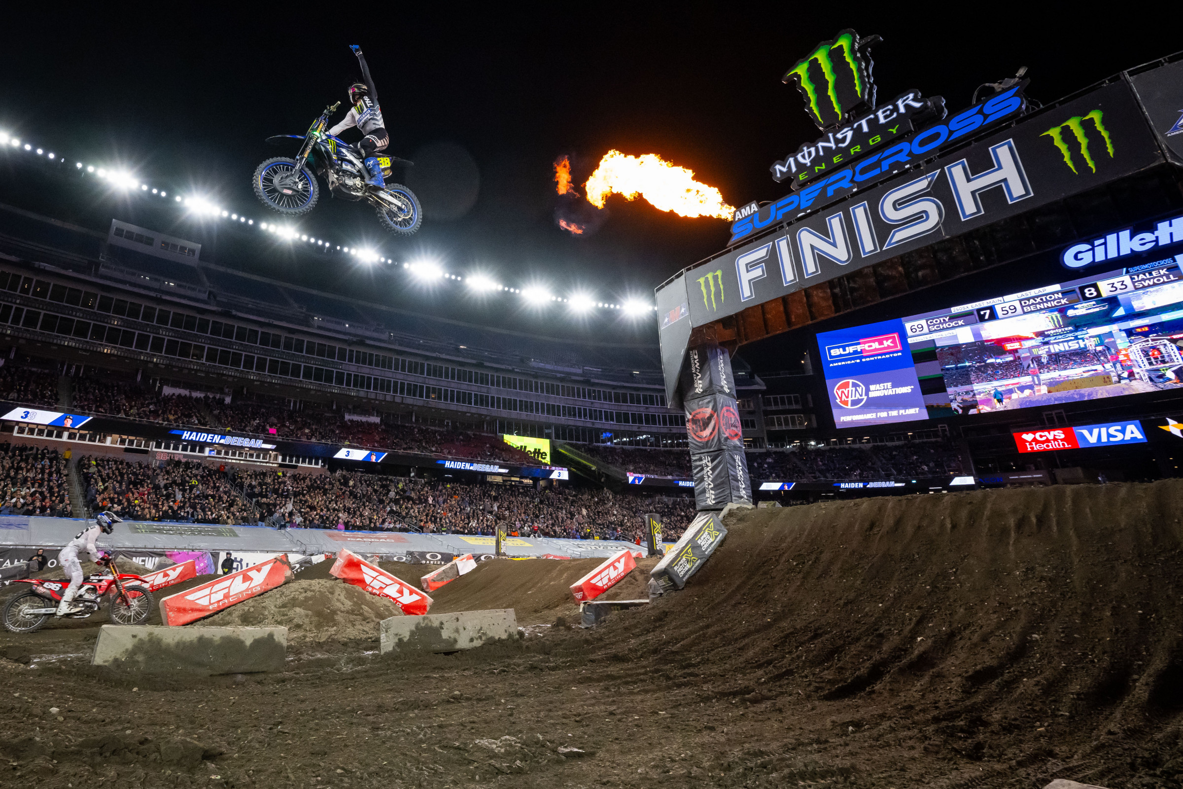 Now the sophomore supercross pro faces a 13-point deficit to McAdoo in the standings with three races to go, two of which are East/West Showdowns, which offer a huge chance to make up ground he lost early in the year with the ups and downs of his second season. If he’s going to do it, he’ll need more nights like this: a start, no mistakes, no drama. Can he make Foxborough a pattern? There’s a lot on the line over the next few weekends.
