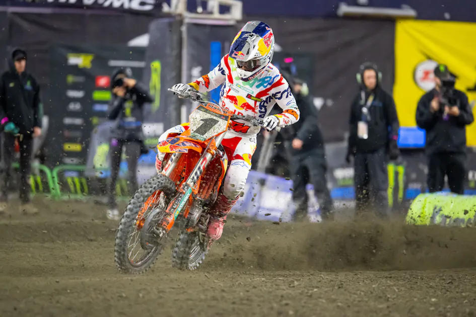 “There for a while I rode really close behind him [Roczen] and then I kinda, at some point, you kind of hold back a little bit and take, not a breather, but when you have good speed and you're able to ride comfortable and you feel like you have more speed than the guys in front of you," Sexton said. "So, you kinda hold back and then you try and make a really hard push and see if you can break him. Ken, he's not dumb, either. He knows how to ride defensive, but also he's a super smart rider. So, it was hard and obviously him and I are pretty good friends. So, I'm not gonna just go in there and absolutely demolish him, which it wouldn't be cool. I wouldn't do that to pretty much anybody, but I didn't want to Kenny especially. So I just was trying to make a smart pass and I got close to him a few times and I was like, 'Man, I feel like I'm close but I couldn't make a pass,' and then I was able to kind of figure out a line to get around him and then he stuck right behind me and I made that mistake after the finish, like, 'I am not gonna let him get back around me.'"