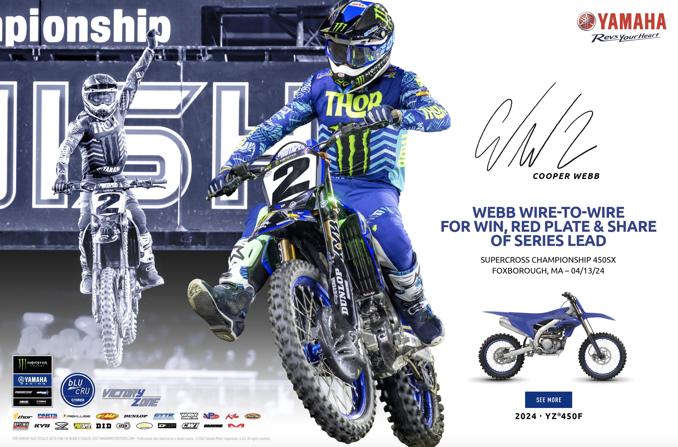 Welcome to Racerhead. Monster Energy Supercross is in Nashville with not two, nor even three, but FOUR red plates at the top of the rankings. With his win last weekend in Foxborough, Monster Energy Yamaha Star Racing’s Cooper Webb put himself in position to take over the points leader completely, and if not for a late-race pass by HRC Honda’s Jett Lawrence on Webb’s teammate, Eli Tomac, Coop would indeed have it alone. And with this being an East-West Showdown in the 250SX class, the Monster Energy/Pro Circuit Kawasakis of Cameron McAdoo (East) and Levi Kitchen (West) leading their respective regions, both green bikes will be adorned with red plates. With the weather looking like it’s going to cooperate, it should be quite a night at the races in Music City!