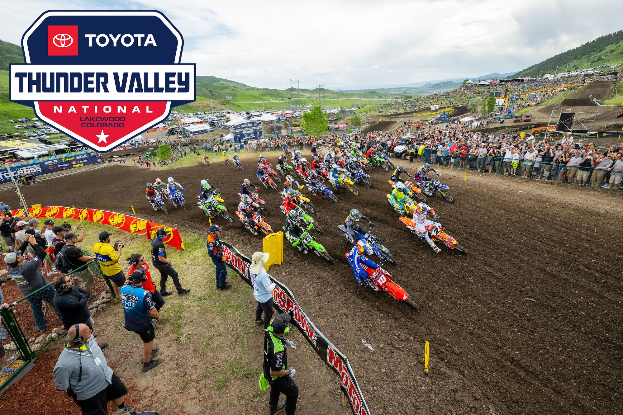 MORGANTOWN, W.Va. – MX Sports Pro Racing, Inc., in conjunction with Thunder Valley Motocross Park, has announced the return of longtime event partner, Toyota, which will become title sponsor of the landmark 20th running of the Toyota Thunder Valley National on June 8 from the mile-high altitude of Colorado’s Thunder Valley Motocross Park. The scenic mountainside venue will host the first race outside California, for Round 3 of the 2024 Pro Motocross Championship, sanctioned by AMA Pro Racing, and Round 20 of the SuperMotocross World Championship Series.