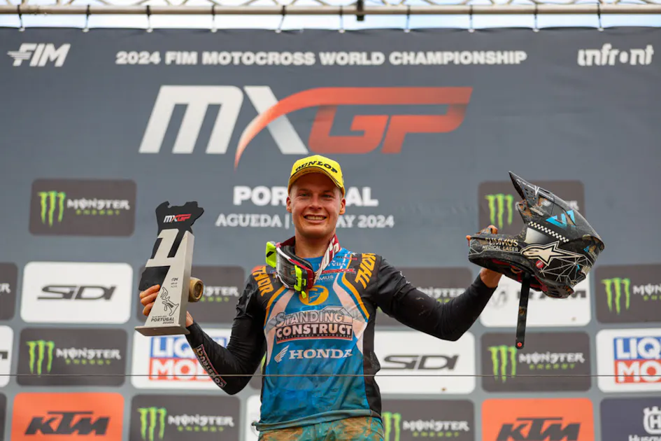 MXGP saw a monumental battle between the two five-time World Champions, Team HRC’s Tim Gajser and Red Bull KTM Factory Racing man Jeffrey Herlings, and the pair shared the two race wins. However, the jubilant overall victor was Pauls Jonass, who took second in both races to top the podium for Standing Construct Honda MXGP!