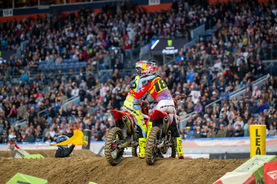 A week after Monster Energy AMA Supercross visited the City of Brotherly Love, two brothers got out front and battled for a premier-class win, and then Jett and Hunter Lawrence marked the first 1-2 finish by a pair of brothers in the 50-year history of the series. While this race in Denver, Colorado, will now become an answer to a trivia question and earned a spot in the record book, it also makes a larger statement about where this sport is going. Lawrence brothers 1-2? This is likely not just a trivial piece of trivia, because it’s sustainable and repeatable. So, from something that had never happened before, Denver might just be the kick off to something that might happen over and over again.