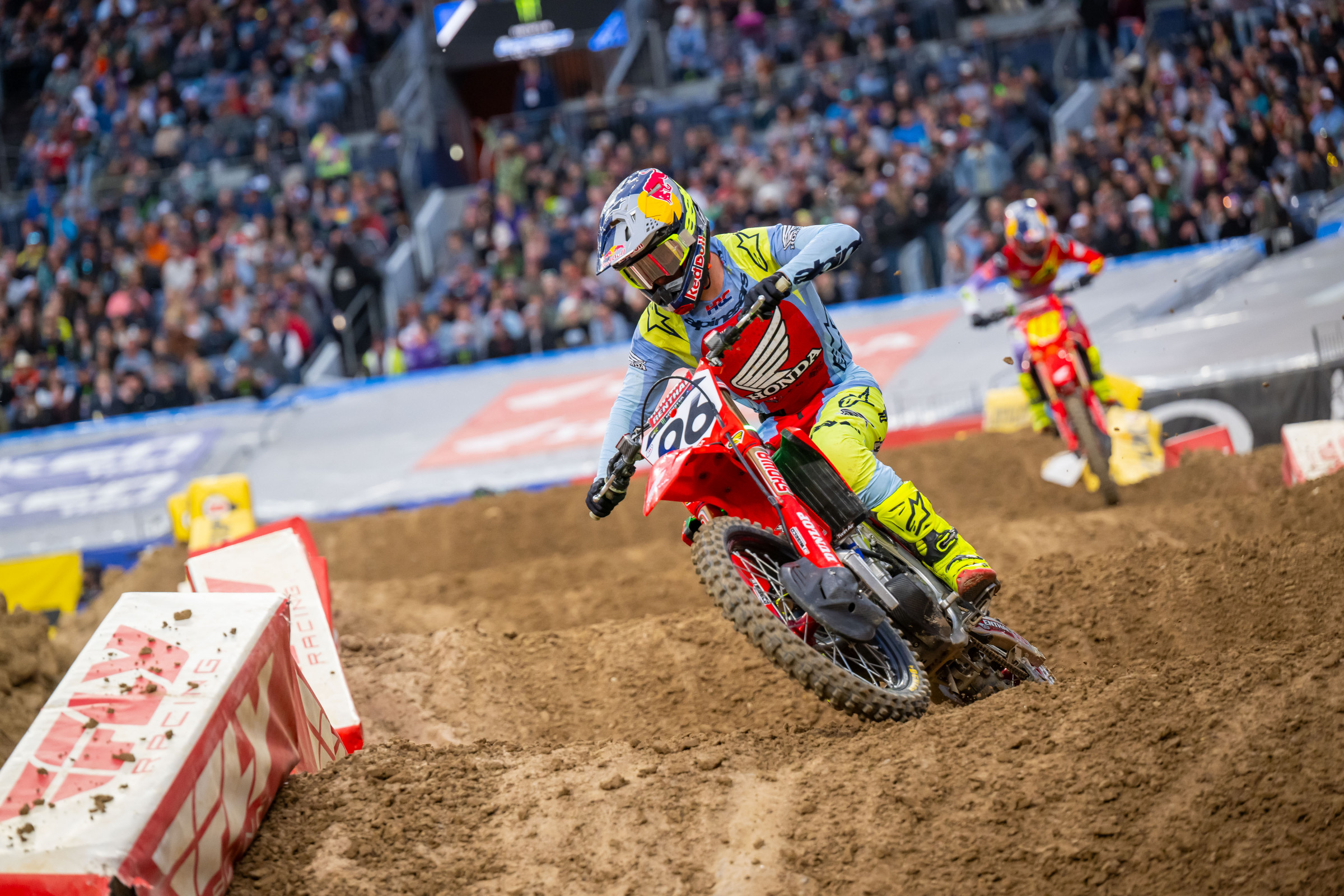 “It’s easy to say,” said Hunter Lawrence. “Obviously I’m not going to race him pretty hard, even though tonight [a win] would have been awesome, but this championship is not all about me. I’ll have my time next year as well and maybe even next weekend. Great night overall, glad to execute the starts, that’s what we’ve been struggling with in the main events on other weekends. Happy to just put it all together.”