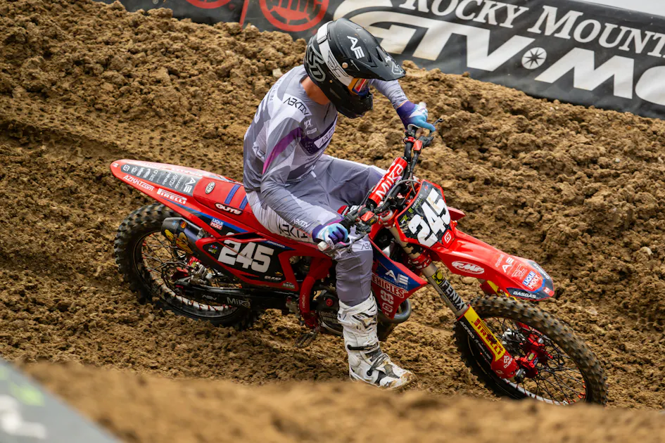 We received an update on Matti Jorgensen following a hard crash at the Denver Supercross. Although not caught on the broadcast, the supercross rookie had a hard crash in the whoops that ended his night early. Jorgensen has finished 13-14-17-19-21 in his first five supercross main event starts aboard a GasGas MC 250F. He was treated by the Alpinestars medical crew and helped off the track.
