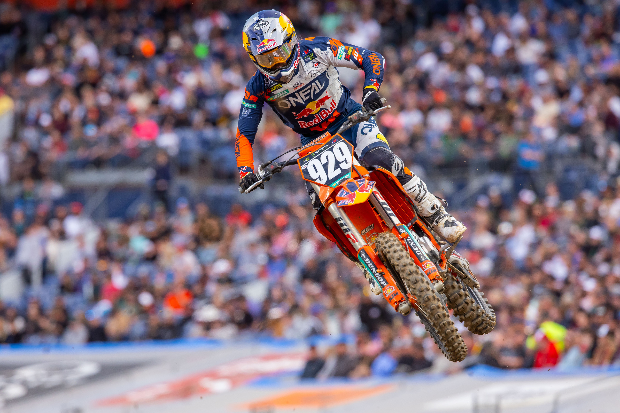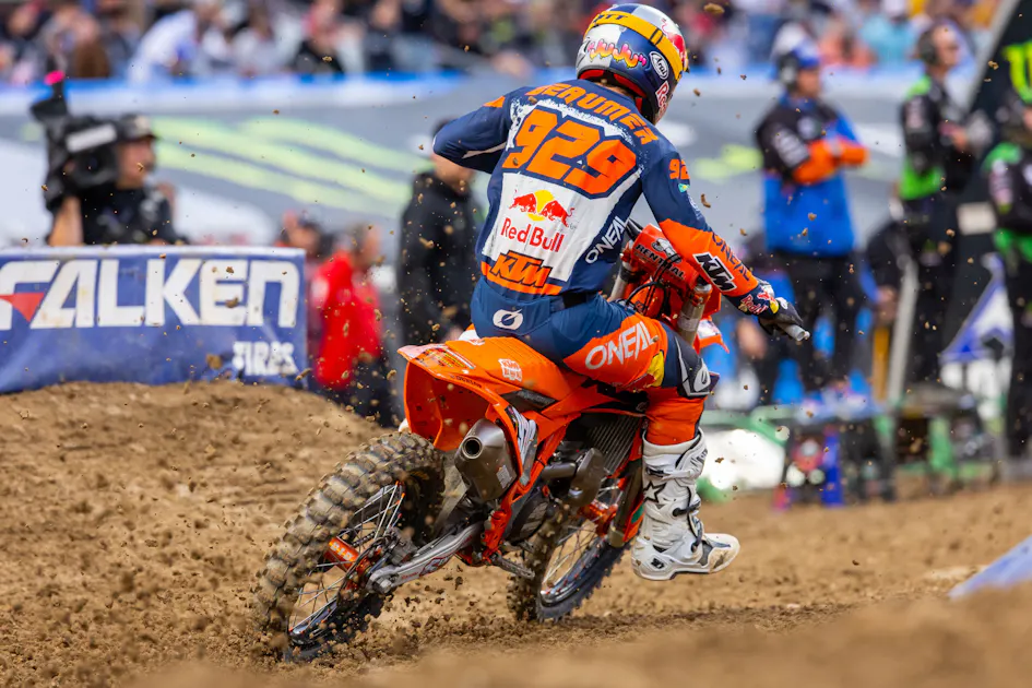 Red Bull KTM Factory Racing’s Julien Beaumer made his supercross debut back at Anaheim 1, with an impressive sixth place finish. Since then, he has not been able to match his opening round result, as a rib injury resulted in a mid-season slump. However, he has been able to showcase his speed when he gets a good start. He looked good in Nashville placing ninth at the East/West Showdown. In Denver he had some bad luck once again, going down in the early laps of the main event, but was able to come back to tenth. Our Aaron Hansel caught up with him after Denver to get his take on his rookie season.
