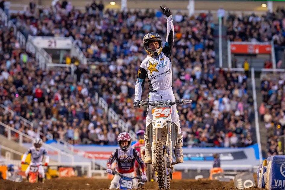 Rockstar Energy Husqvarna's RJ Hampshire rode a great race to finish second in the main and also come away with the 250SX West Region title. Great race by RJ and we’ll talk to him about that race, the start, how he was so good all day and more.