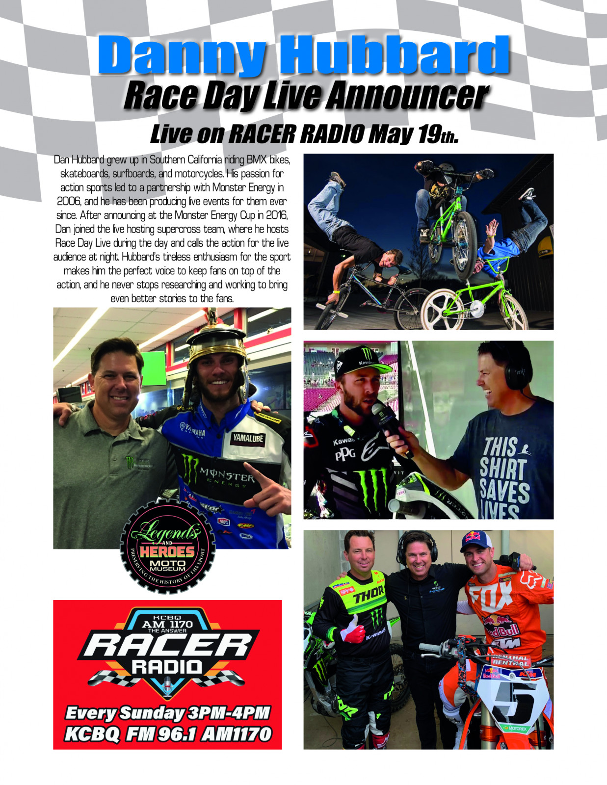 Didn't get to hear enough of Dan Hubbard this season on Race Day Live every Saturday? He's the guest this Sunday on Racer Radio on San Diego's KCBQ FM 96.1, AM 1170, from 3 to 4 p.m. West Coast time.