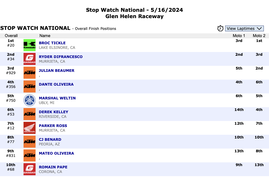 | Full Results | Daytona Vintage Supercross Results | NA |
