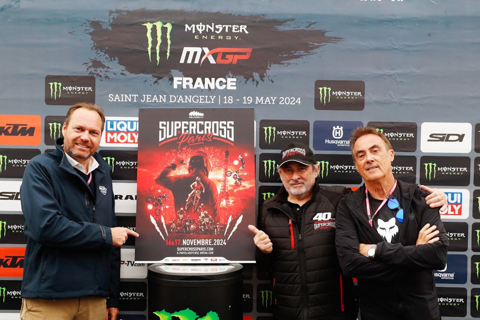 Main image: Sébastier Poirier (FFM), Xavier Audouard (Paris SX Sports Director) and Eric Peronnard (Paris SX USA liaison) presented the 41st edition of the Paris Supercross at the GP of France last week-end.